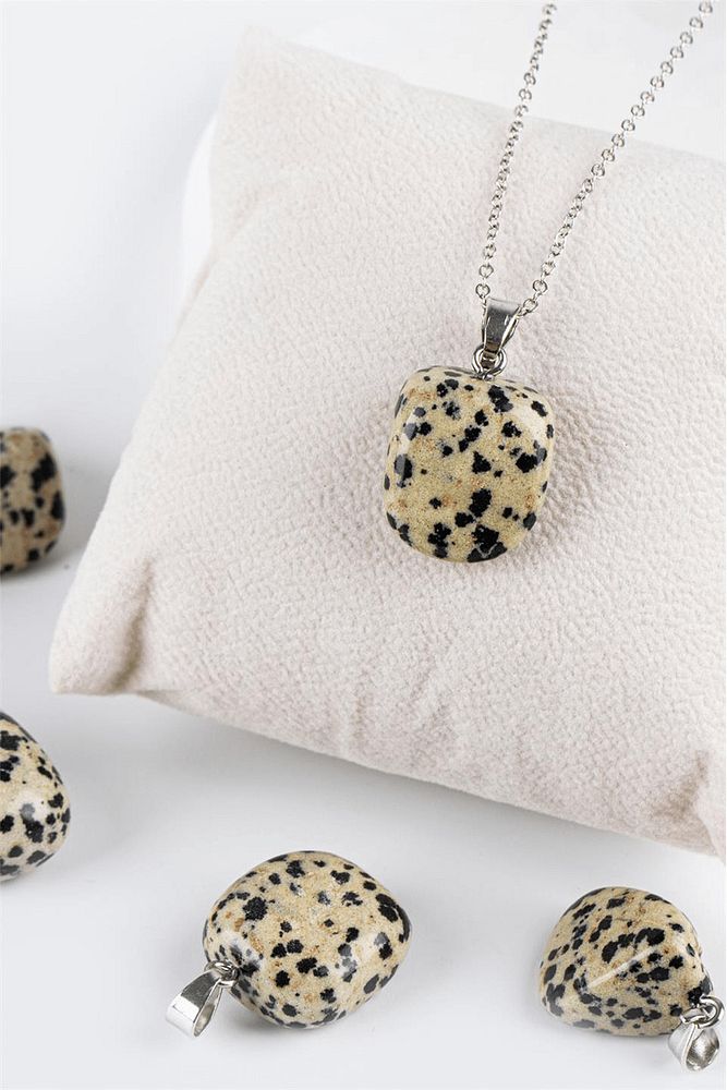 Sertifikalı Tımbıl Model Benekli Dalmaçya Jasper Taşı Kolye