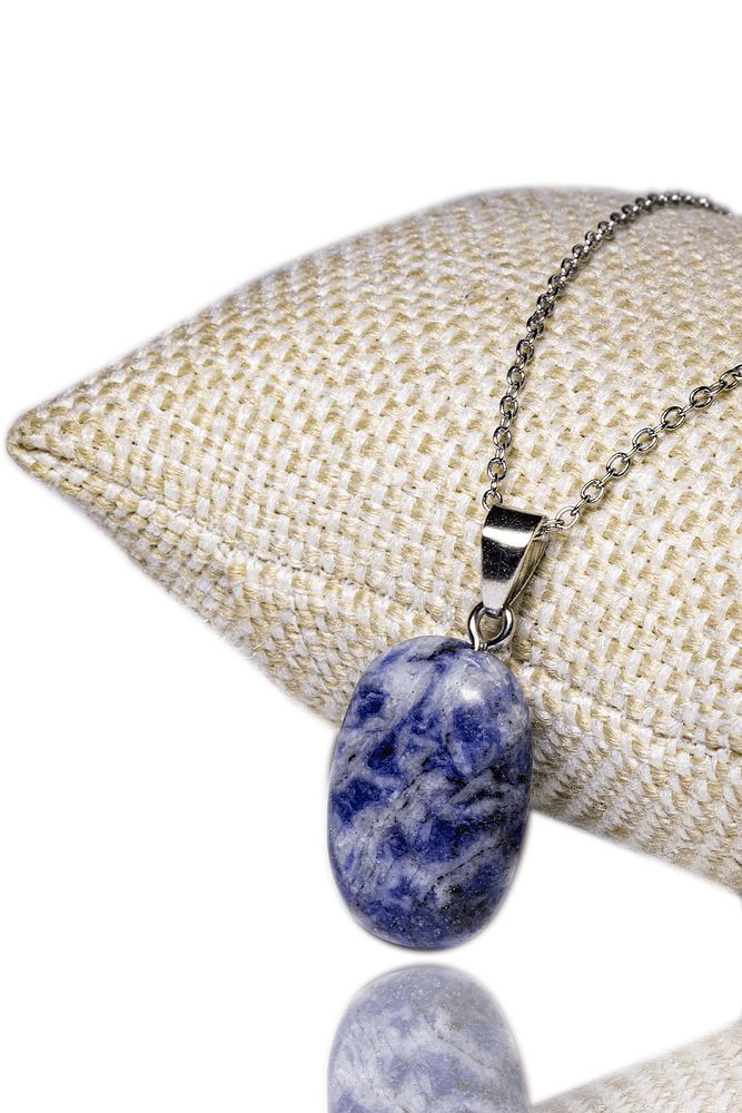 Sertifikalı Tımbıl Model Sodalit Taşı Kolye (GÜMÜŞ APARATLI)