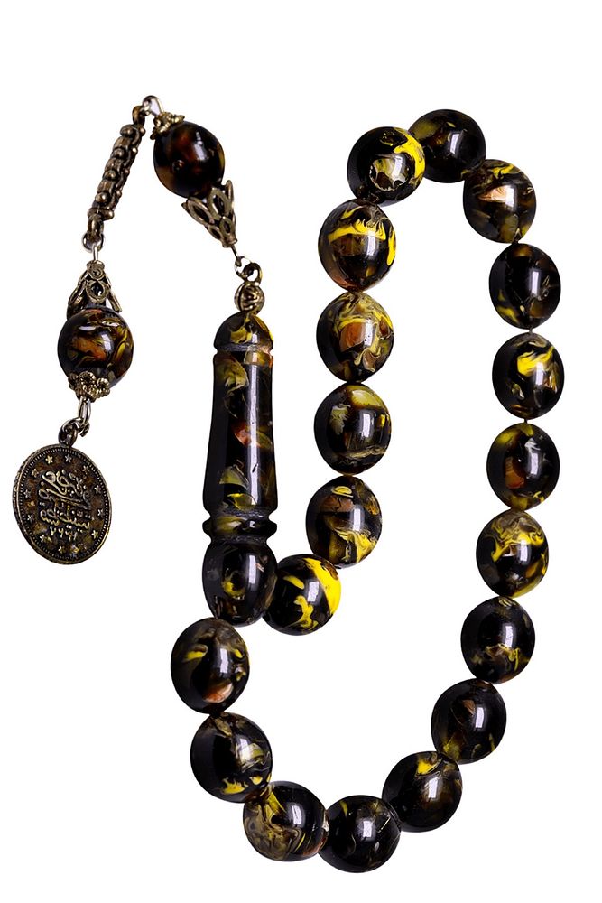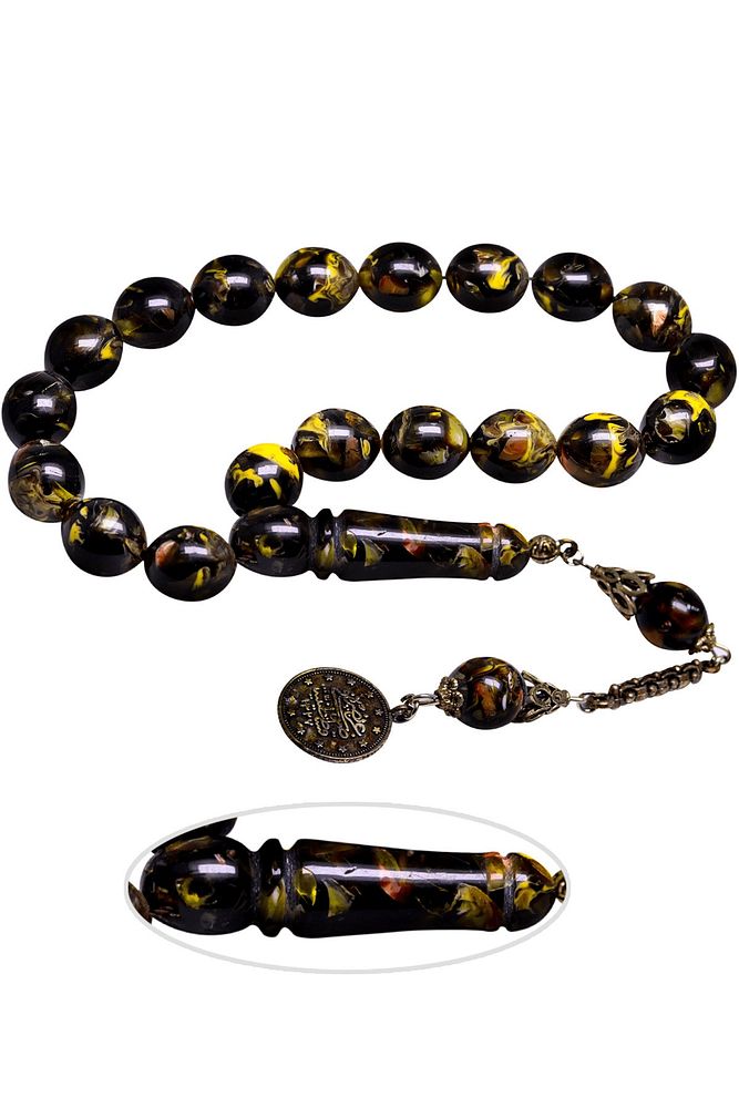 Ürün ya da Doğal Taş Açıklaması (Para - Sağlık - Pozitif Enerji Taşı) Arizona toz kehribar efe tesbih modelleri, ''Tesbih Atölyesi'' Atölyelerinde ustalarımız tarafından kuru torna işciliği ile elde özen ile tane tane işlenmektedir. Ürünlerimiz el işciliği olduğu için sınırlı sayıda üretilmektedir. Tasarımlarımızda kullandığımız taşlar Dünya'nın en kaliteli yapay reçinesi kullanmaktayız. Arizona Toz kehribar tesbih modellerimizin kalite olarak ateş ve sıkma kehribardan hiç bir farkı yoktur. Aradaki tek fark ateş ve sıkma kehribar tesbihin renk almasıdır. Bu tasarımda; Arizona efe maskot toz kehribar kullanılmıştır. İmame ve Püskül yapımında; Düşük ayar gümüş kullanılmıştır. Çift kaplama rodaj atılıdığı için renk atmaz ve kararmaz bir yapıya sahiptir. Üretildiği Malzeme; Arizona Toz Kehribar; Ana Renk; Siyah - Sarı Renk; Ağırlık; 20-30 gr; Tane Şekli; 10.5x11.5 mm; Tane Ölçüsü; Beyzi Kesim; Toplam Uzunluk; 20-30 cm; İmame ve Püskül Maddesi; Düşük Ayar Gümüş;
