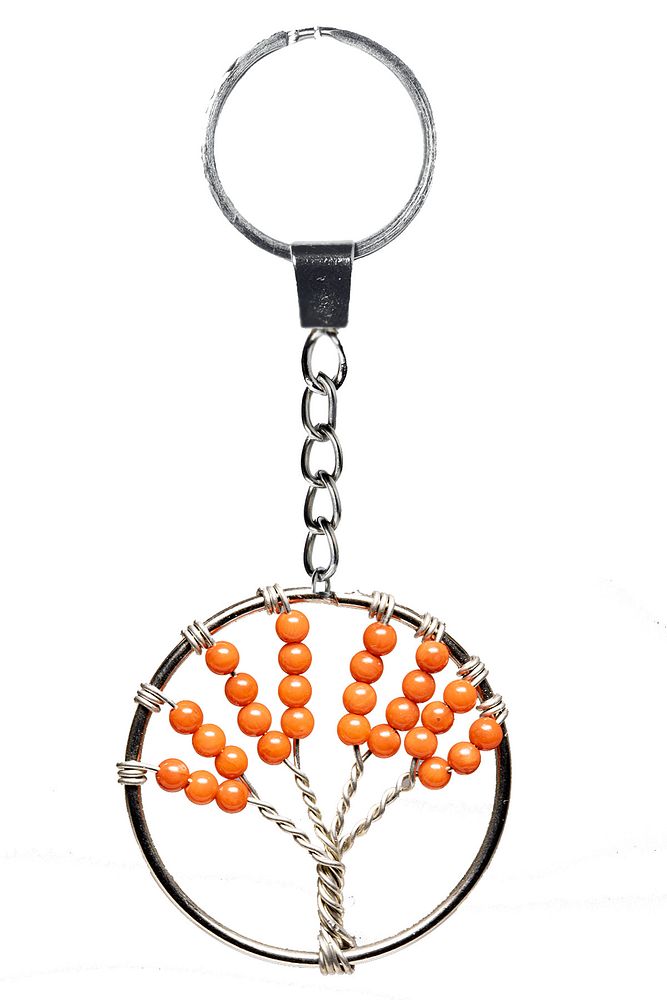 Sertifikalı Turuncu Akik Taşı Hayat Ağacı Doğal Taş Anahtarlık