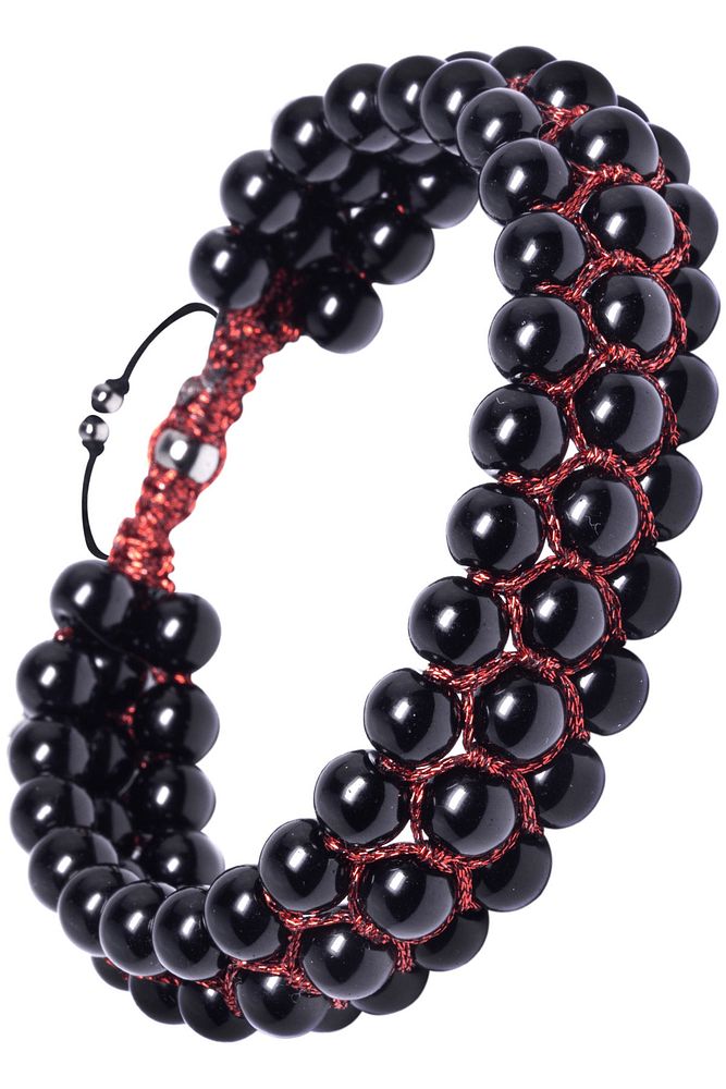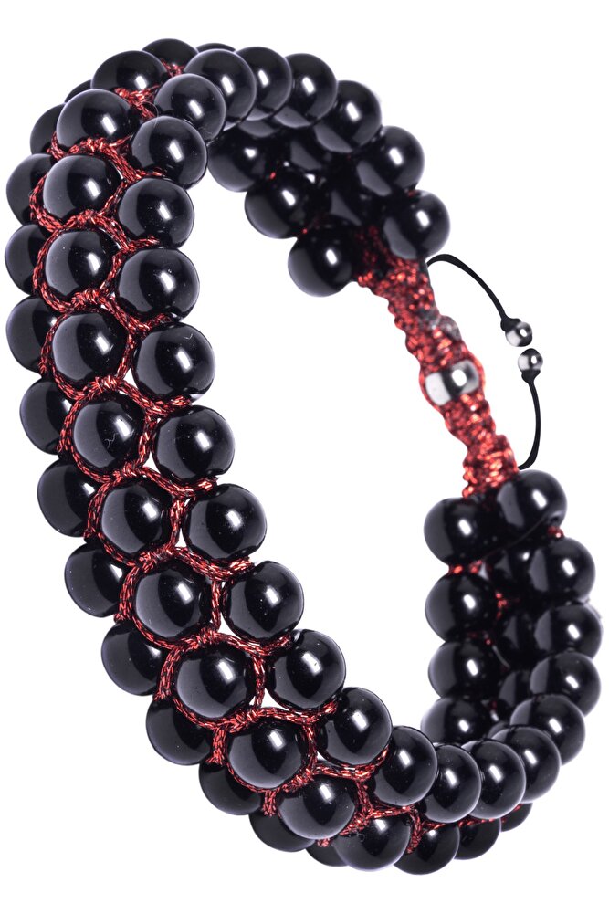 Sertifikalı Üçlü Kırmızı Makrome Parlak Doğal Oniks Taşı Bileklik