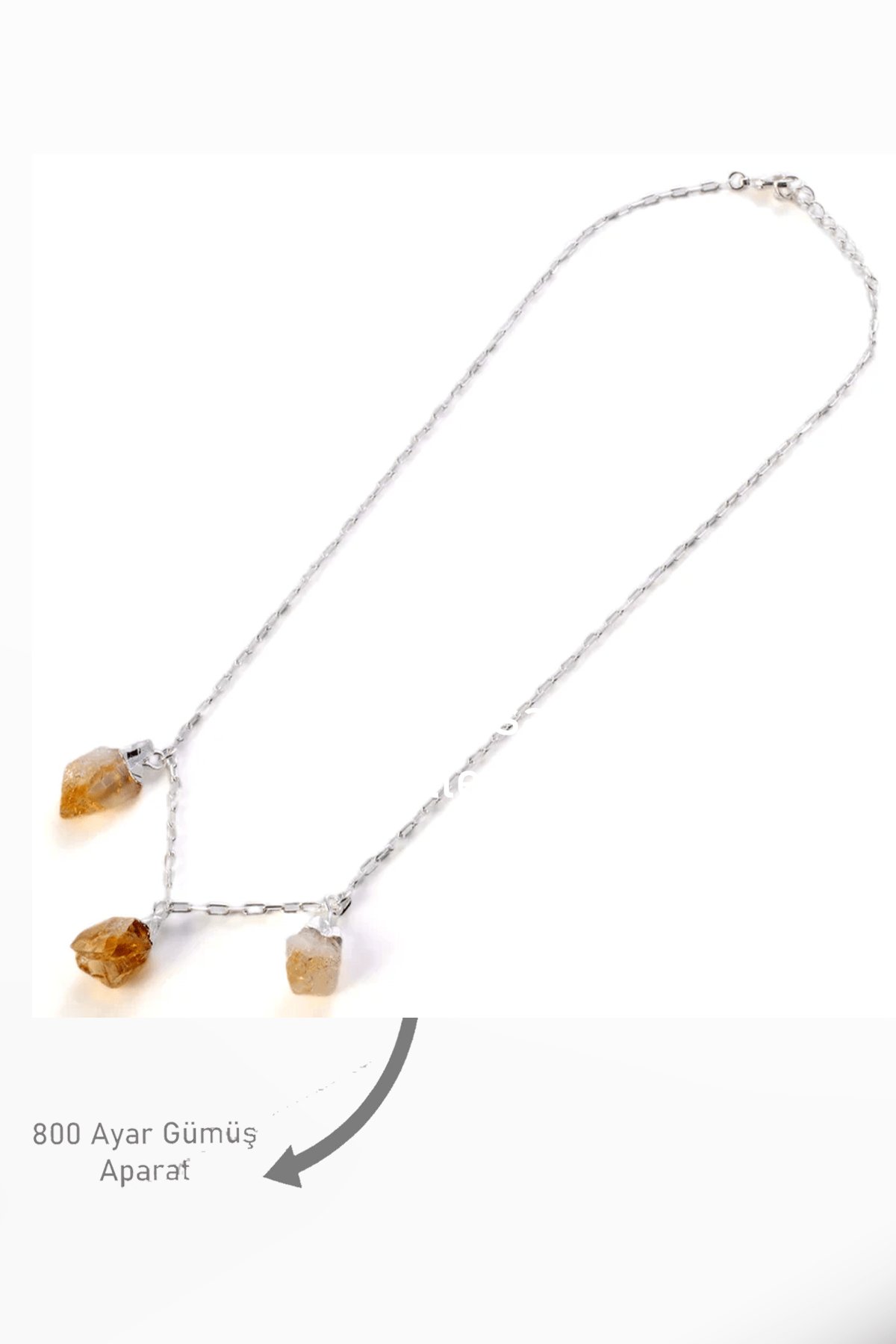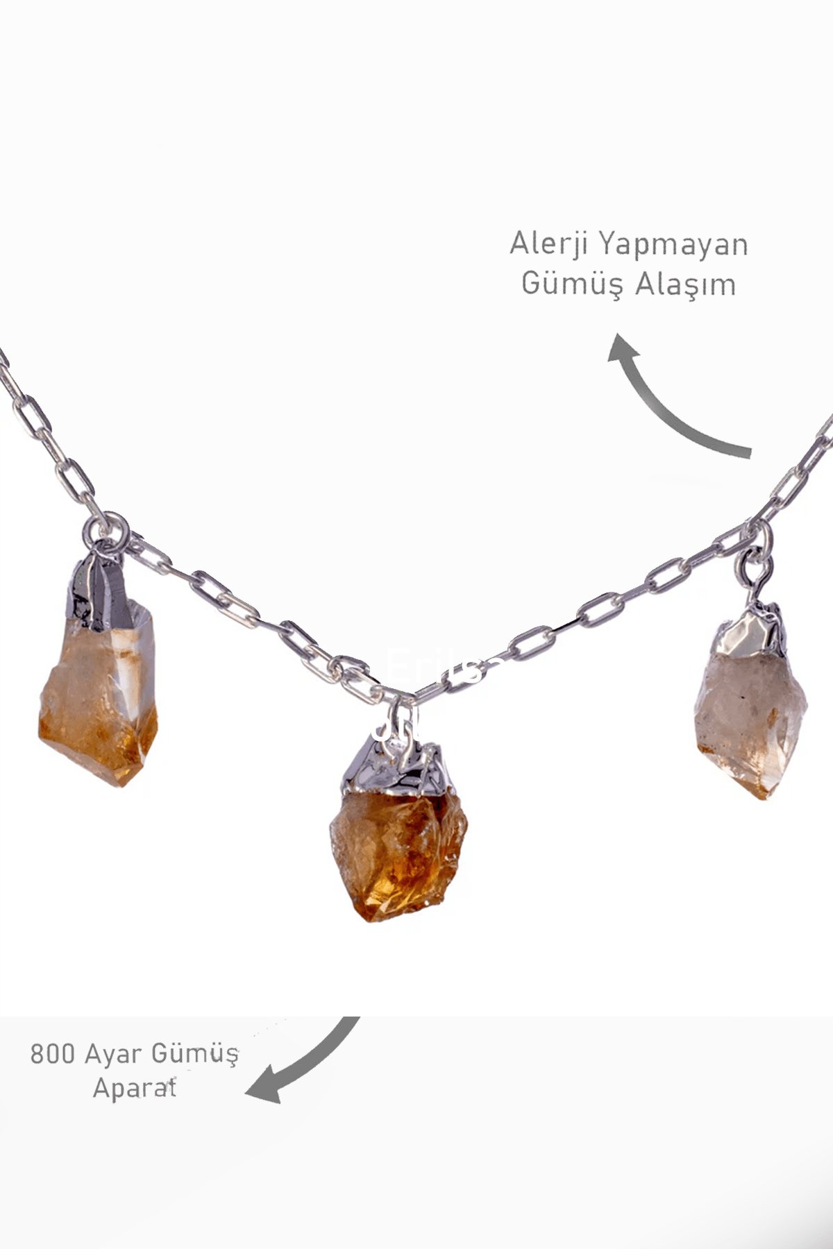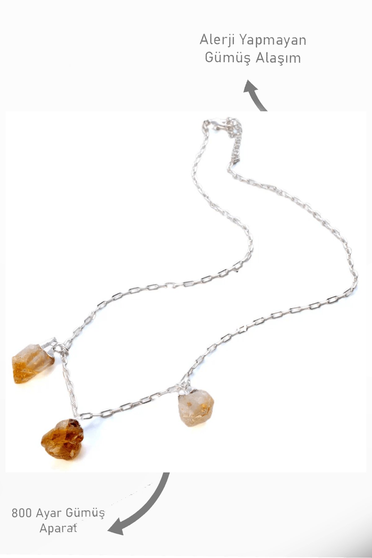 Sertifikalı Üçlü Model Ham İşlenmemiş Sitrin Taşı Kolye