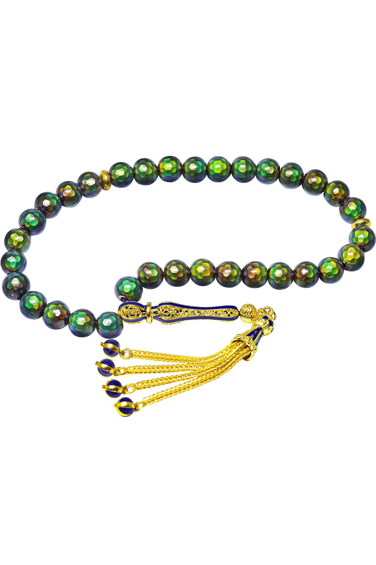 (Vücut Isısına Göre 12 Renk Değiştiren Meteor Taşı) His taşı tesbih modelleri, ''Tesbih Atölyesi'' Atölyelerinde ustalarımız tarafından kuru torna işciliği ile elde özen ile tane tane işlenmektedir. Dünya'nın en uygun fiyatlarına tesbih satışı sağlamaktayız. Tasarımlarımızda kullandığımız taşlar Dünya'nın en kaliteli taşlarıdır. Hislerinize göre 12 renk değiştirir. Yedek ipi gönderilir orijinallik ve garanti belgesi paketinize eklenmektedir. Bu tasarımın yapımında; Volkanik oluşum meteor taşları ile yapılan piyasa değeri 700 TL üzeri olan vücut ısısına göre saniyeler içerisinde 12 renk değiştiren his taşı kullanılmıştır. İmame ve püskül tasarımında; Sarı renkli sarı mineli 24 ayar beyaz altın kaplama telkari imame ve püskül seti kullanılmıştır. Çift kaplama atıldığı için renk atmaz ve kararmaz bir yapıya sahiptir. Üretildiği Taş; His Taşı; Ana Renk; Vücut Isısına Göre 12 Renk Değiştirir; His Taşı Ağırlığı; 35-40 gr; Tane Şekl; 8x8 mm; Tane Ölçüsü; Küre Kesim; Toplam Uzunluk; 20-30 cm; İmame ve Püskül Maddesi; Gümüş Kaplama; ;