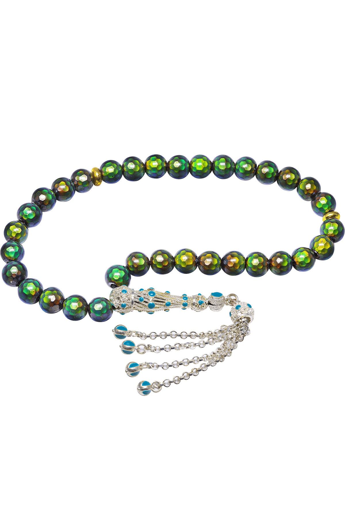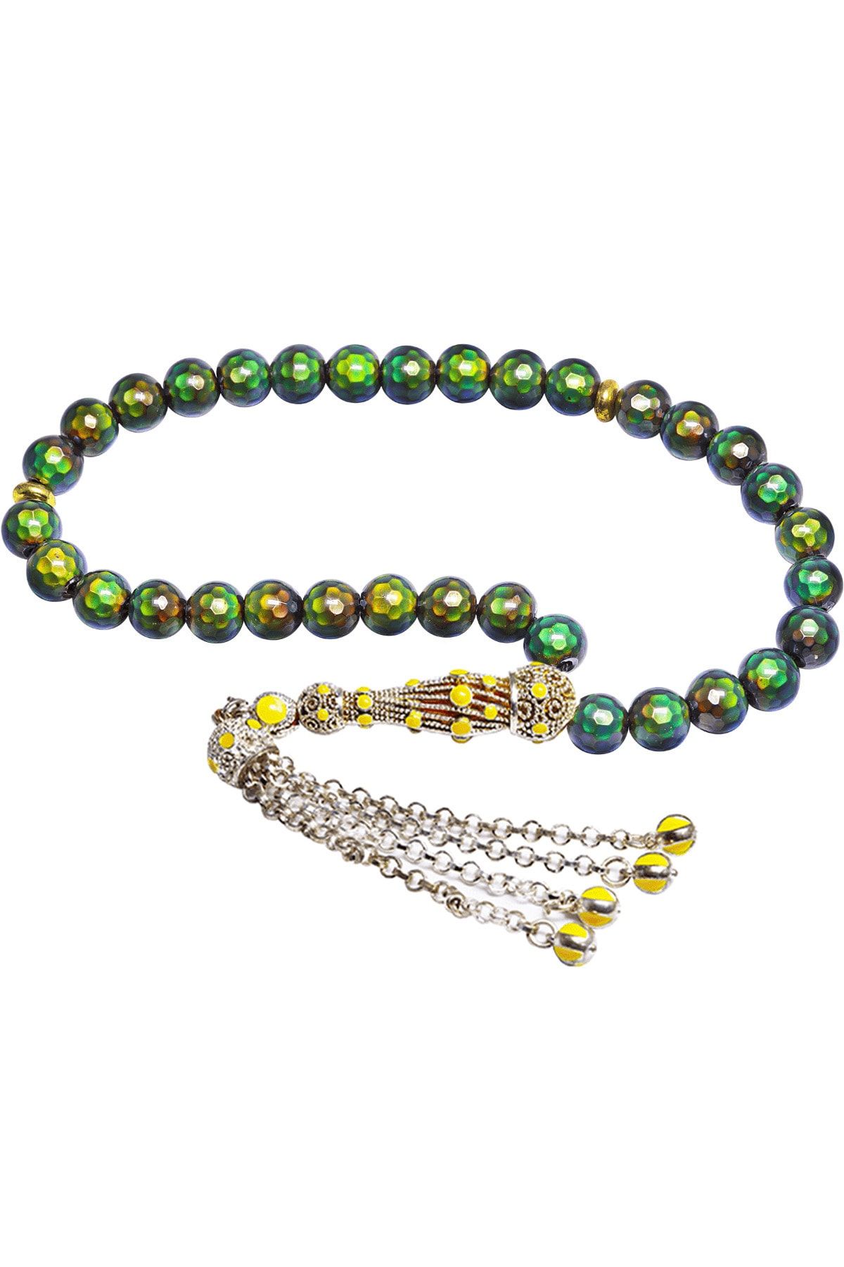 Sertifikalı Vücut Isısına Göre 12 Renk Değiştiren His Taşı Tesbih Yeşil Mineli Telkari Püsküllü