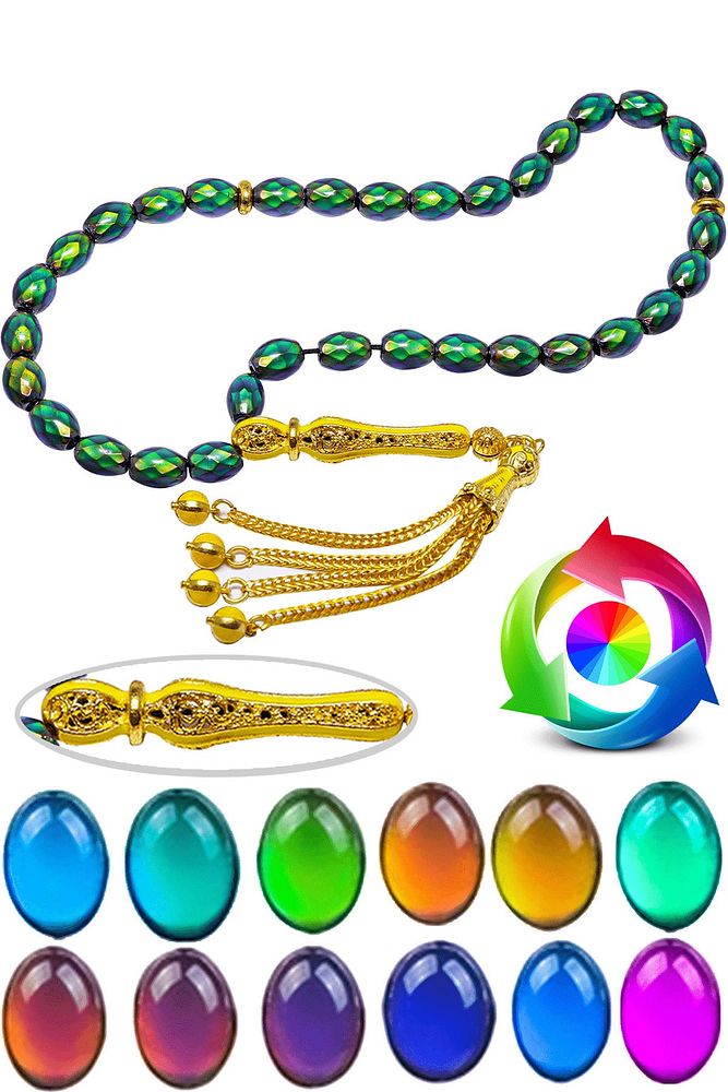Sertifikalı Vücut Isısına Göre 12 Renk Değiştiren Telkari Püsküllü Arpa Kesim His Taşı Tesbih