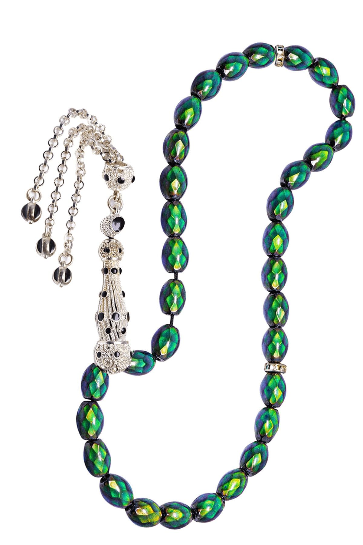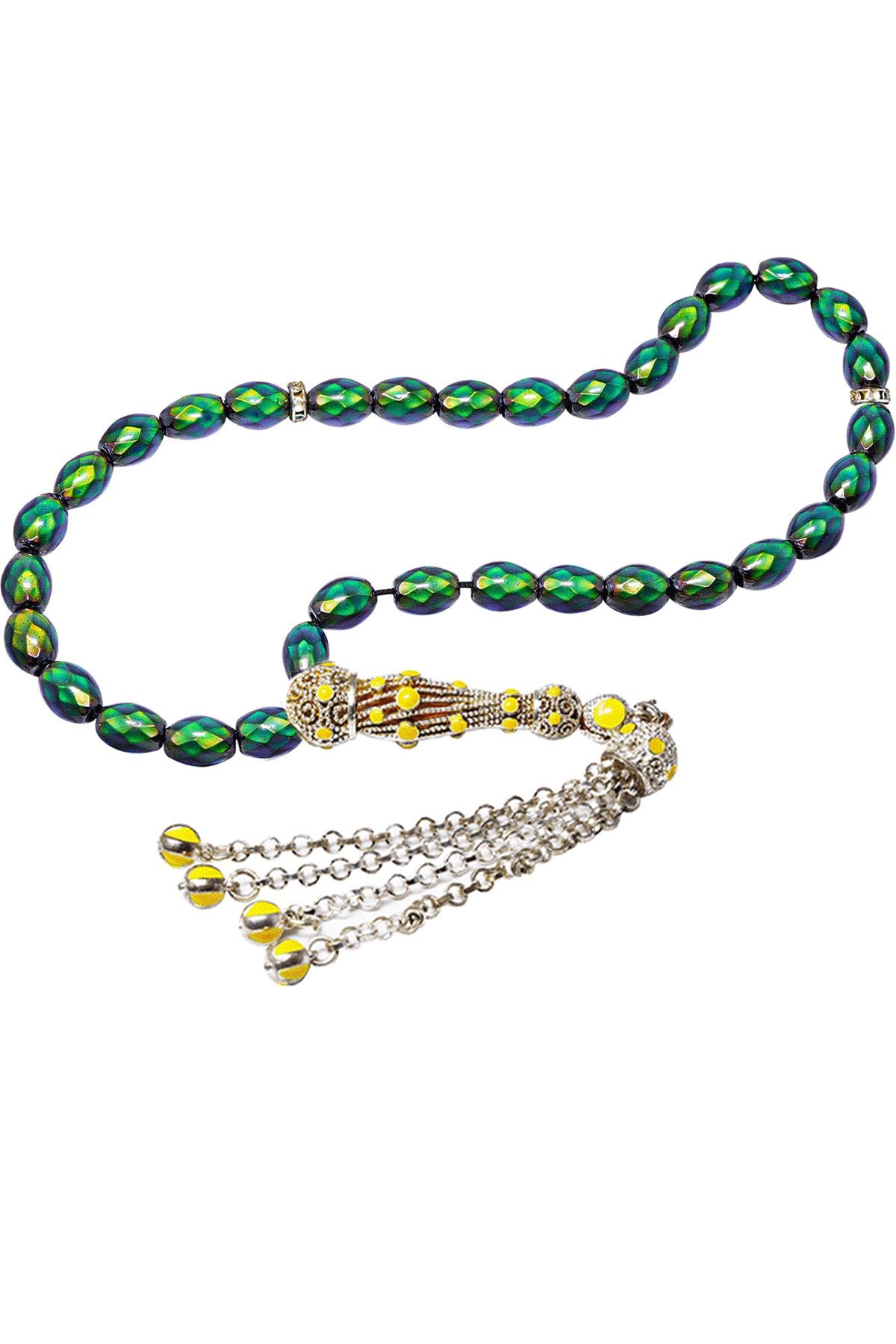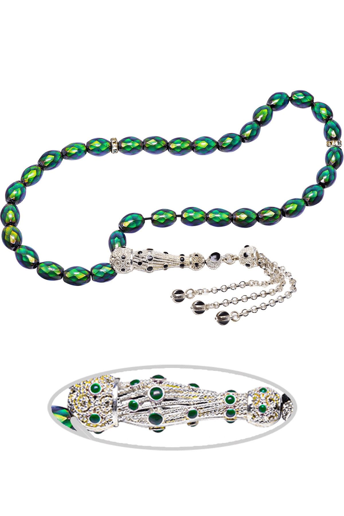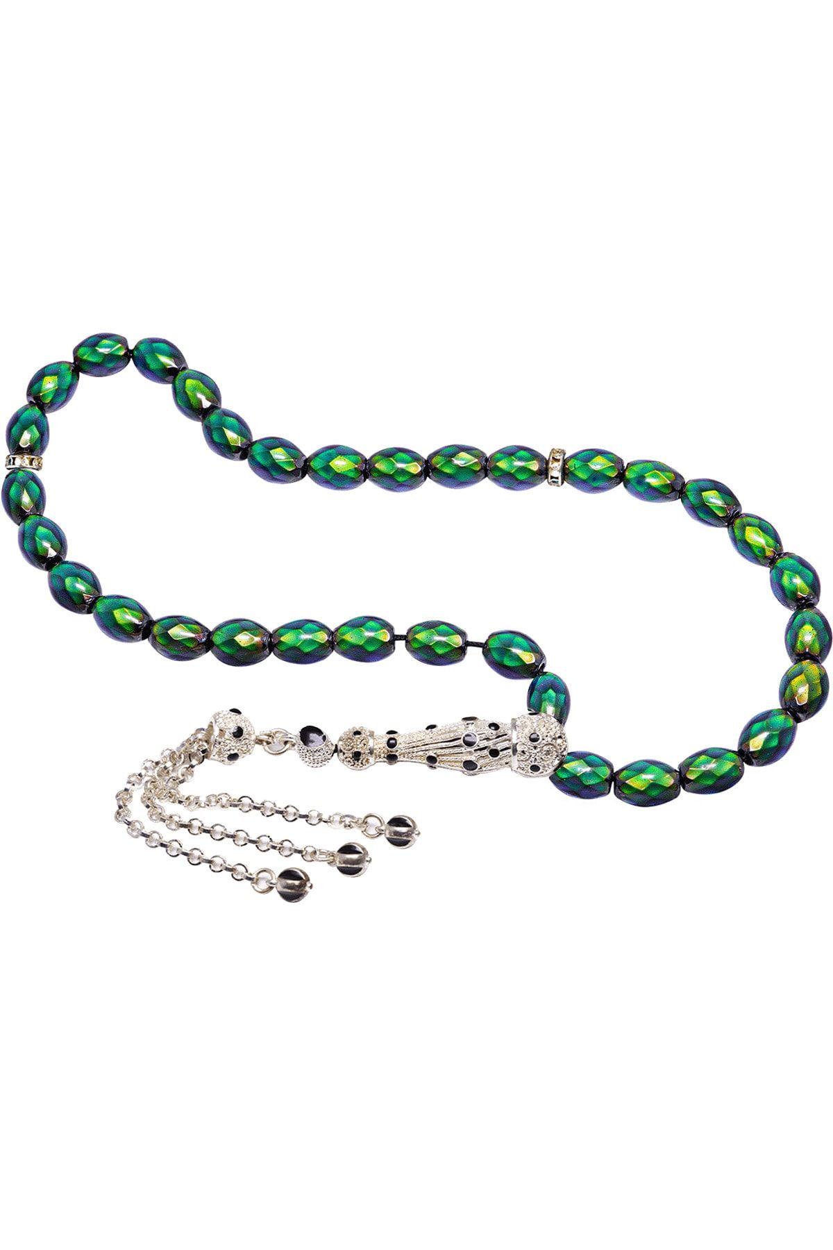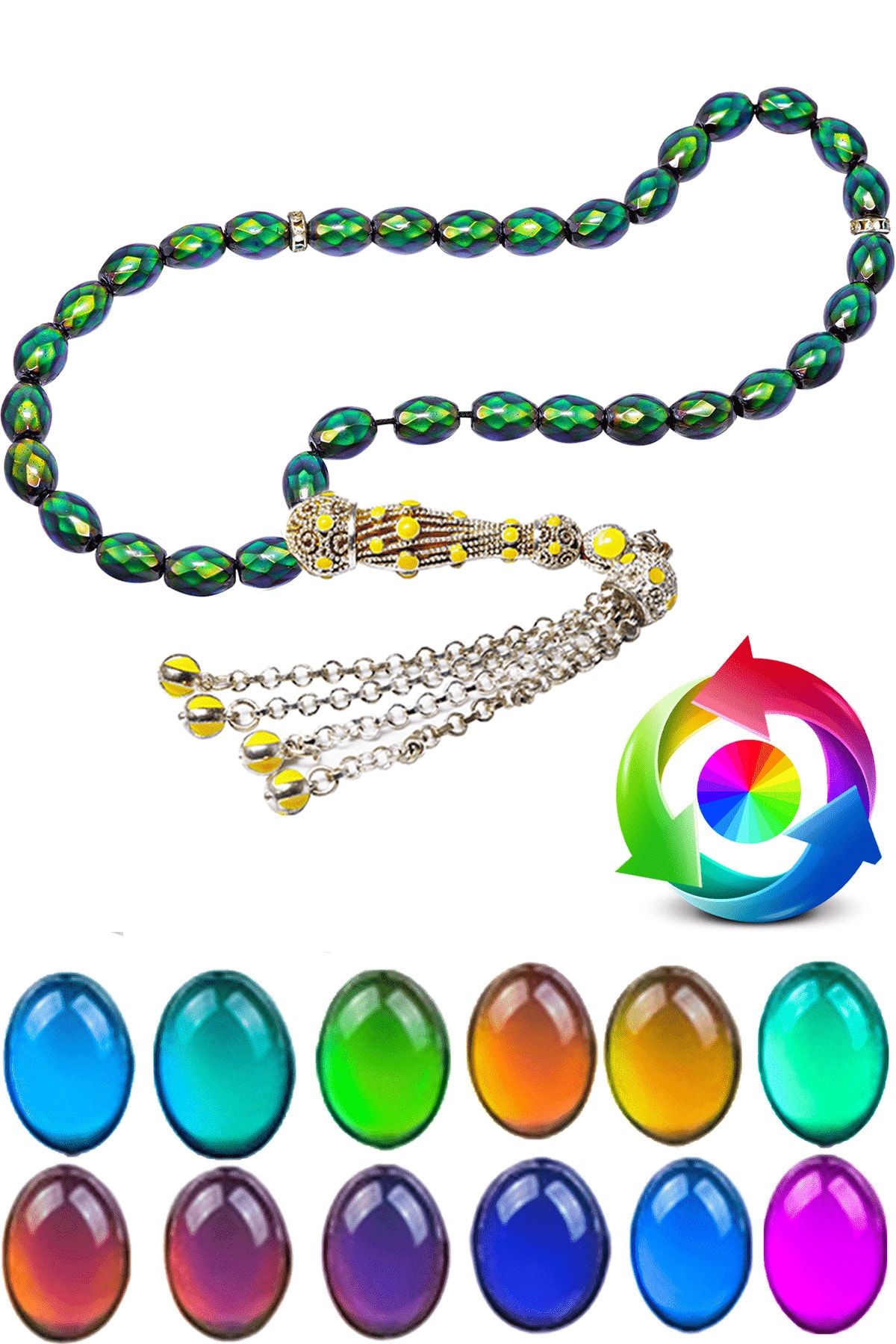 Sertifikalı Vücut Isısına Göre 12 Renk Değiştiren Telkari Püsküllü Arpa Kesim His Taşı Tesbih