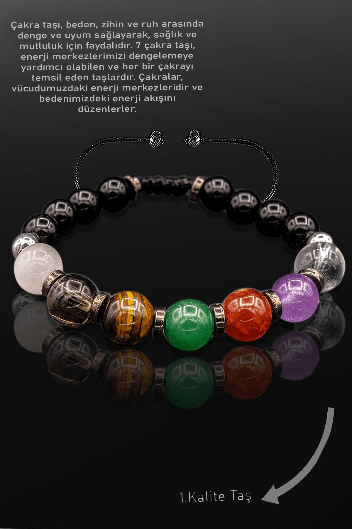 (Doğal Yemen Akik Kaplan Gözü Aventurin Kristal Kuvars Ametist Obsidyen Pembe Kuvars Dumanlı Kuvars Taşı 7 Çakra Bileklikı - %100 Doğal ve Sertifikalı)