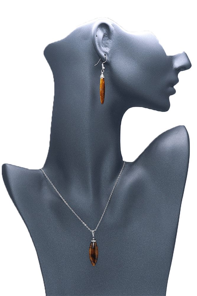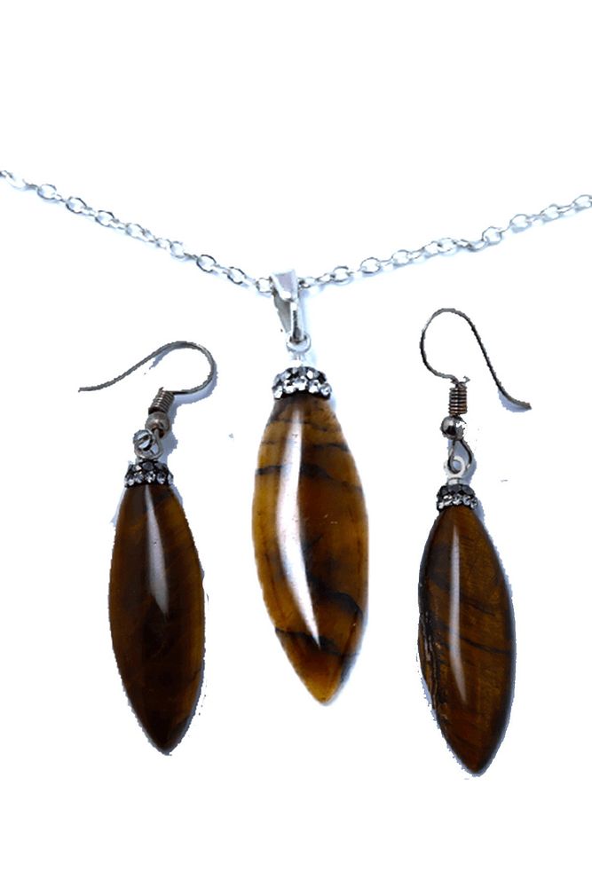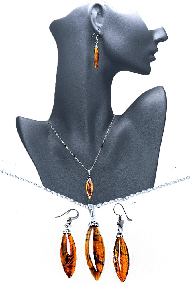 Sertifikalı Yetişkin Doğal Kaplan Gözü Taşı Kolye Küpe Seti
