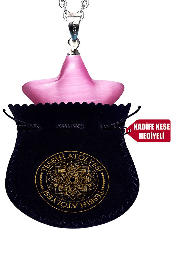 Sertifikalı Yıldız Şekilli Doğal Pembe Kuvars Taşı Kolye