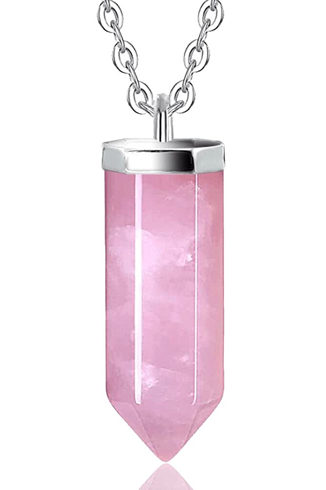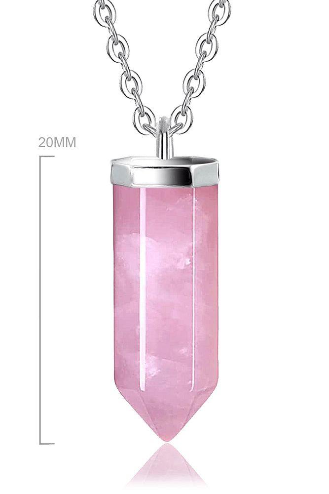 Sertifikalı Yüksek Kalite Doğal Pembe Gül Kuvars Taşı Kolye