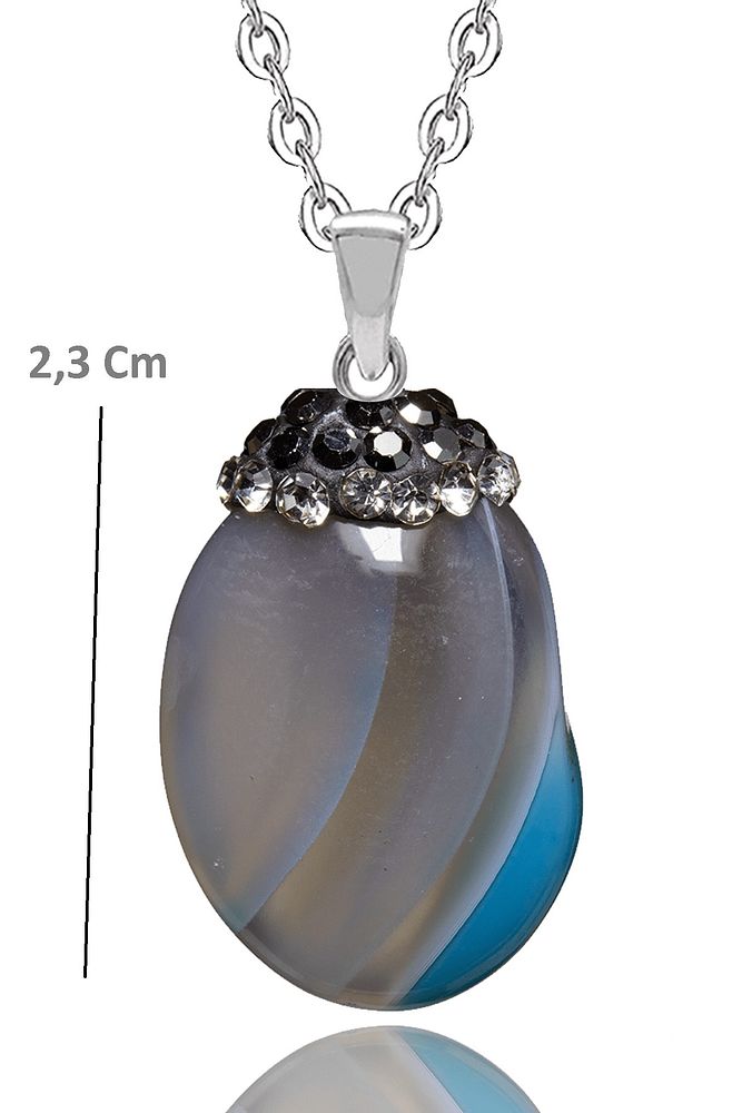 Sertifikalı Zirkon Işleme Mavi Akik Doğal Taş Kolye