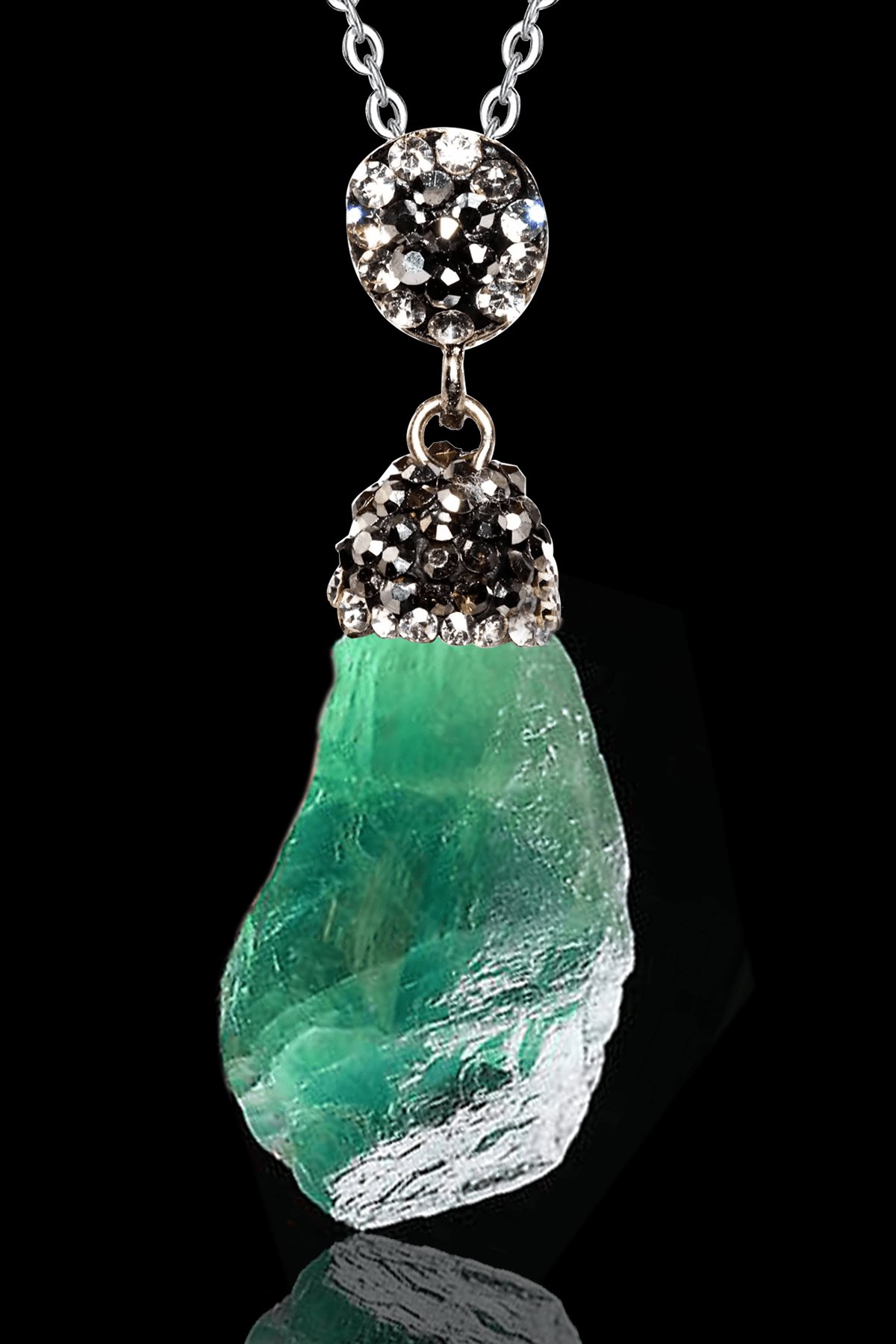 Sertifikalı Zirkon Taşlı Ham İşlenmemiş Yeşil Florit Taşı Kolye
