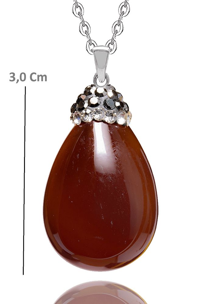 Sertifikalı Zirkon Taşlı Kırmızı Akik Taşı Kolye