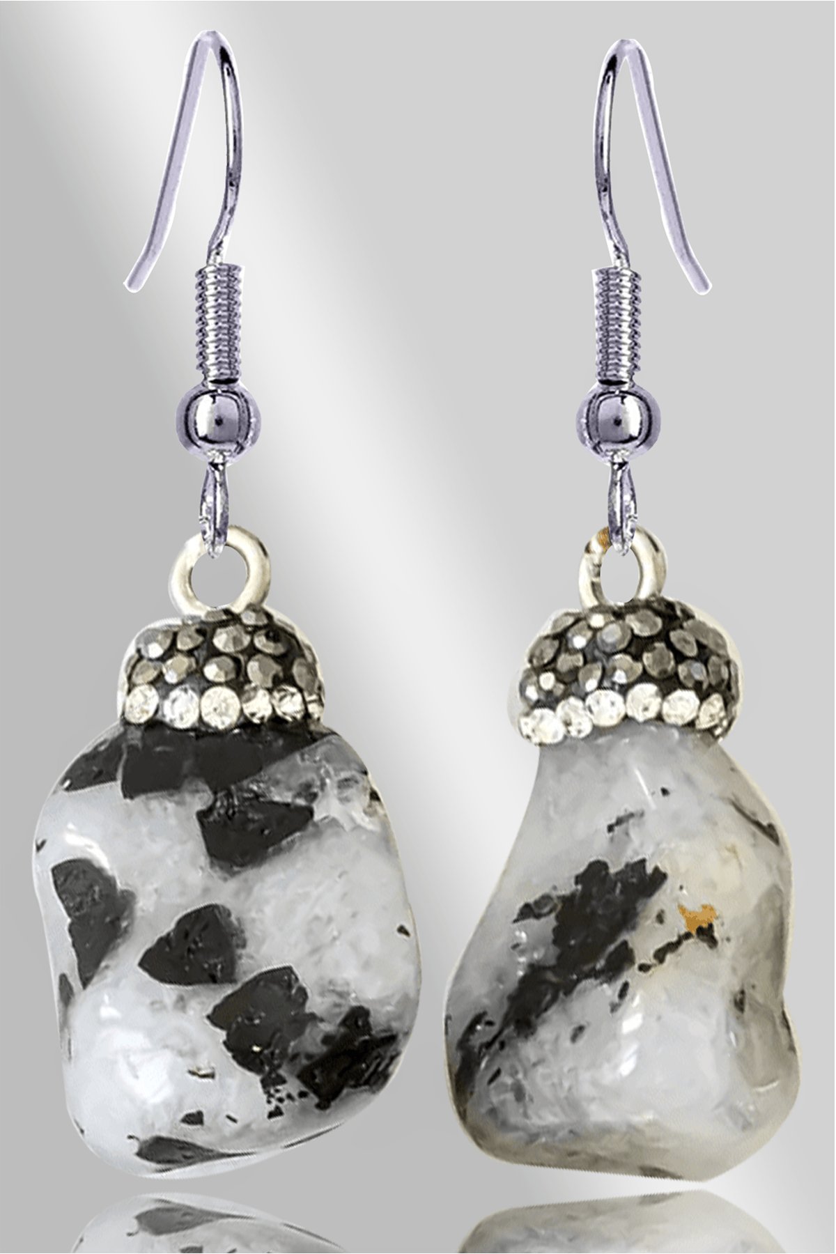 Sertifikalı Zirkon Taşlı Model Turmalinli Rutil Kuvars Doğal Taş Küpe
