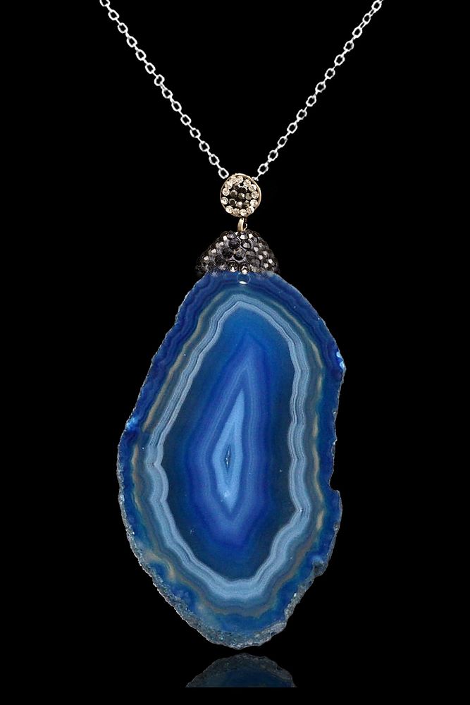 Sertifikalı Zirkon Taşlı Plaka Mavi Akik Taşı Kolye