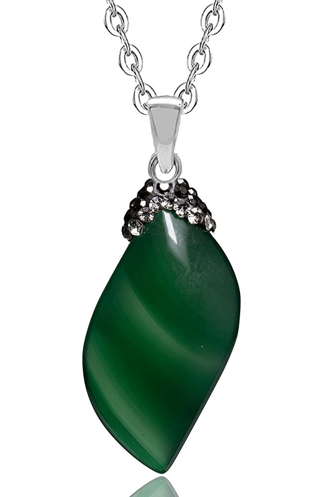 Sertifikalı Zirkon Taşlı Yeşil Akik Doğal Taş Kolye