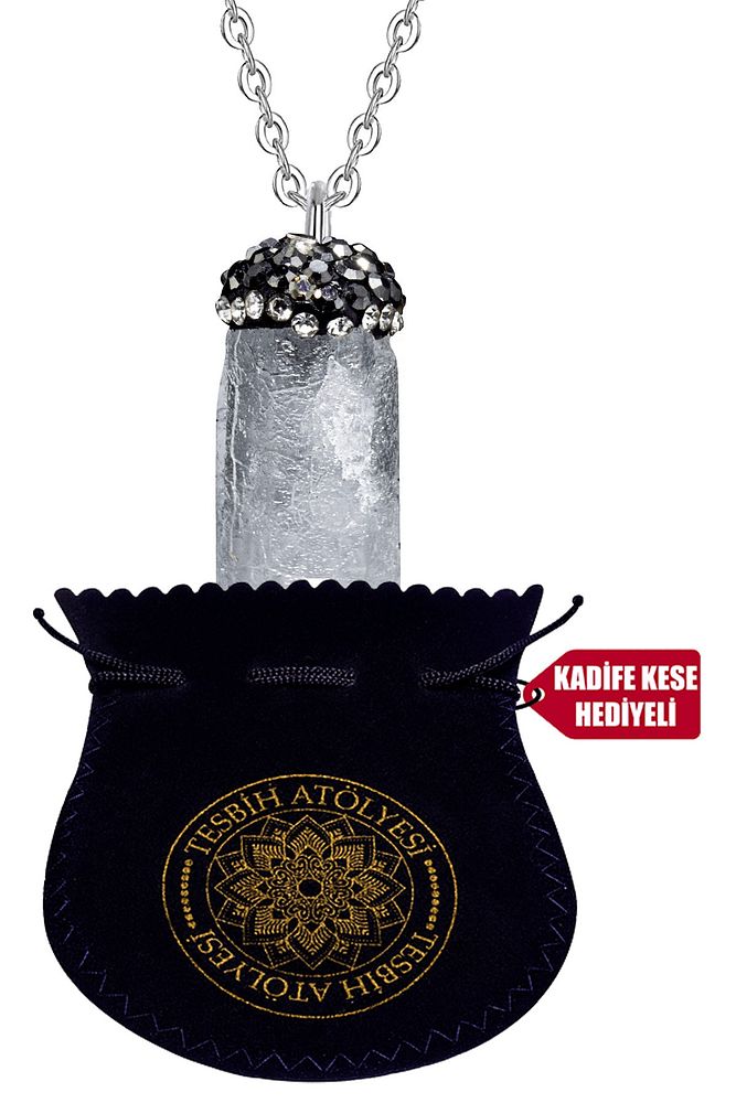 Sertifikalı Zirkonlu Doğal Ham Işlenmemiş Kuvars Taşı Kolye
