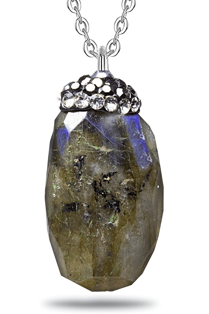 Sertifikalı Zirkonlu Fasetli Doğal Labradorit Taşı Kolye