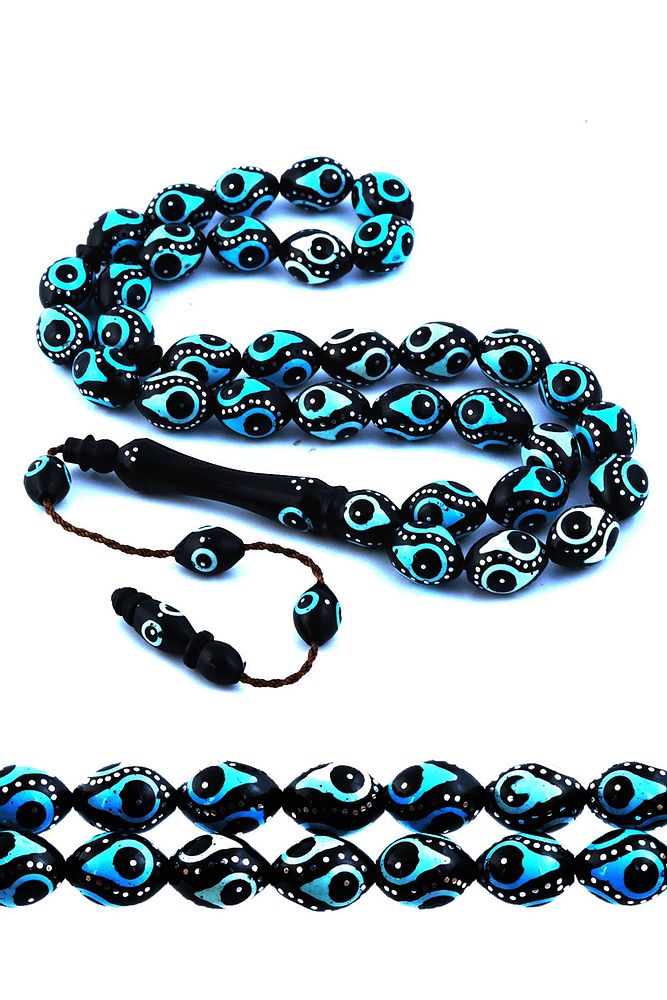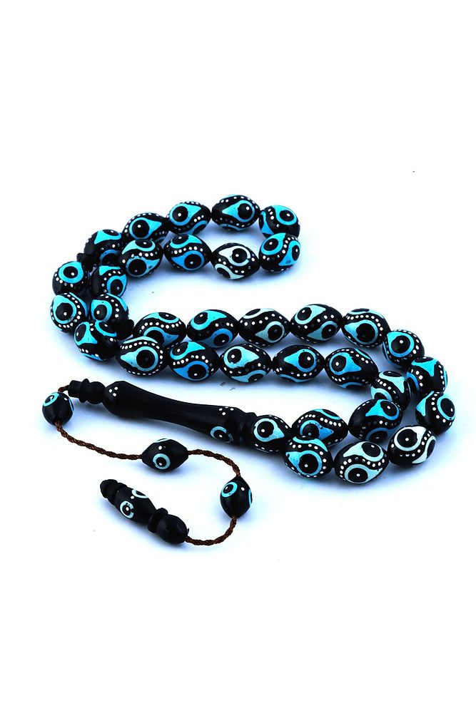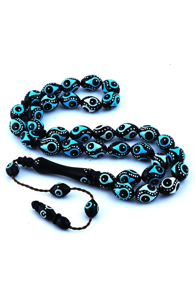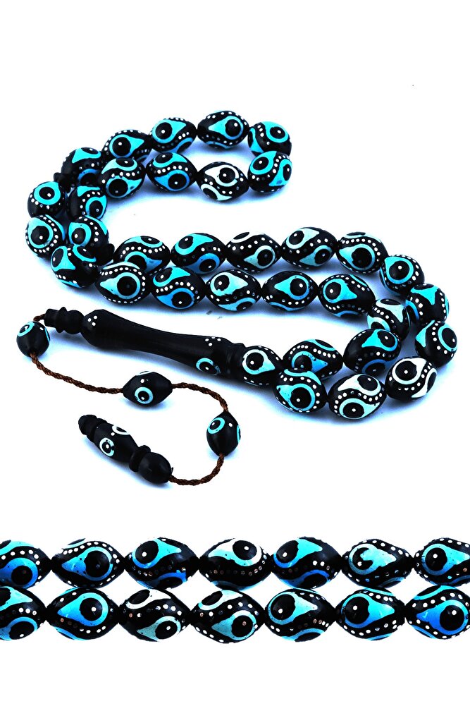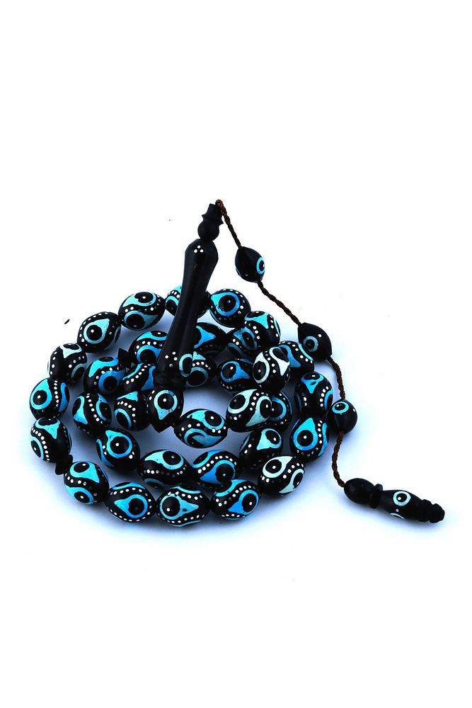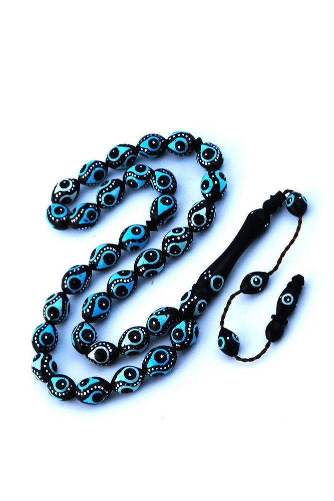 Sistemli Beyzi Kesim Gümüş Firuze Işlemeli Kuka Tesbih