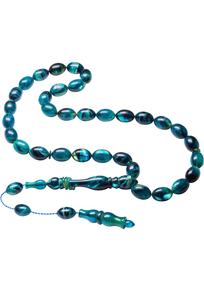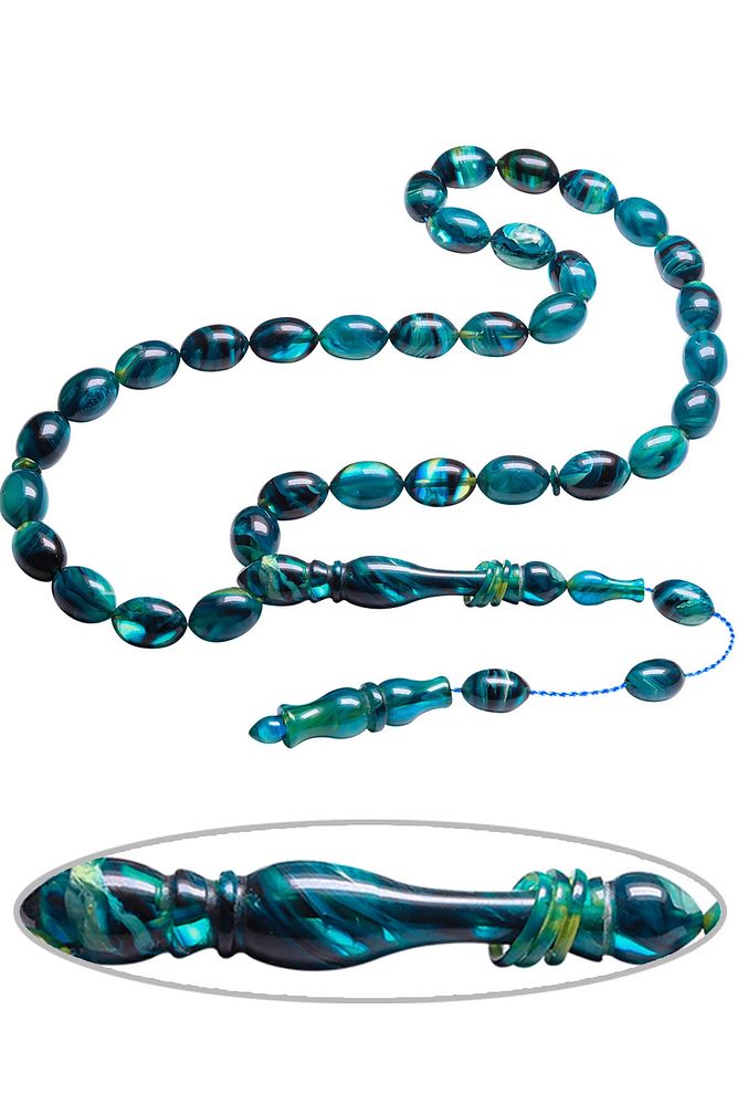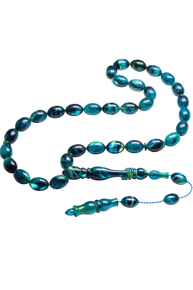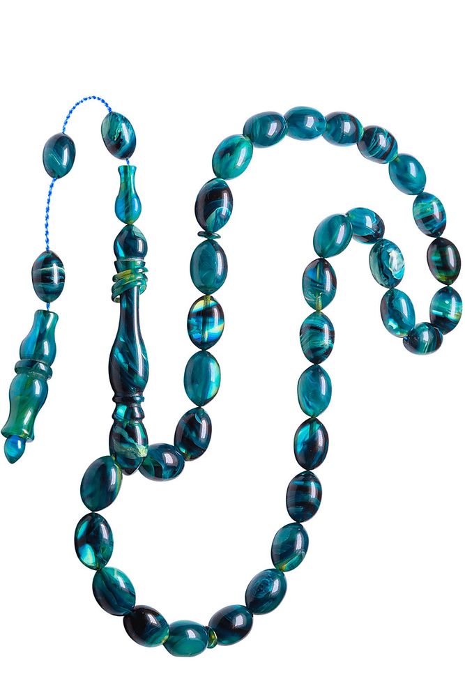 Sistemli Beyzi Kesim Halkalı Mavi Renk Hareli Orijinal Sıkma Kehribar Tesbih