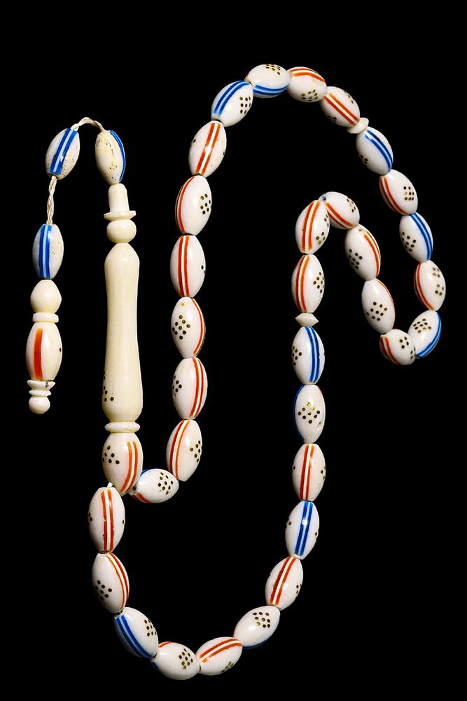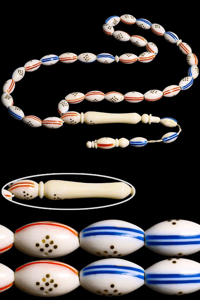 Sistemli Beyzi Kesim Mavi Mine Pirinç Işlemeli Deve Kemiği Tesbih