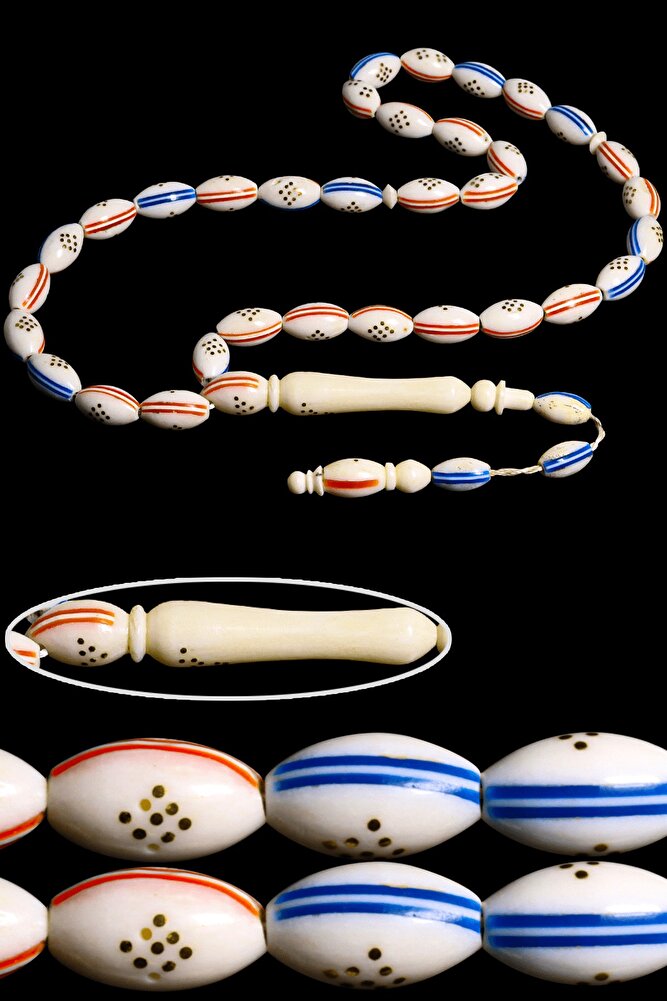 Ürün ya da Doğal Taş Açıklaması (Doğal Sinir ve Stres Taşı) Deve kemiği tesbih modelleri, ''Tesbih Atölyesi'' Atölyelerinde ustalarımız tarafından %100 doğal hayvan boynuzundan kuru torna işciliği ile elde özen ile tane tane işlenmektedir. Ürünlerimiz el işciliği olduğu için sınırlı sayıda üretilmektedir. %100 doğal Hayvansal tesbih, Dünya'nın en uygun fiyat garantisi ile siz değerli müşterilerimize sunulmuştur. Bu tasarımda; %100 doğal deve kemiği kullanılmıştır. Tasarımın işlenmesinde; Kırmızı mercan, firuze mineli ve pirinç işlemesi kullanılmıştır. Üretildiği Malzeme; Deve Kemiği; Ana Renk; Doğal Renk; Ağırlık; 20-30 gr; Tane Şekli; 7x11 mm; Tane Ölçüsü; Beyzi Kesim; Toplam Uzunluk; 20-30 cm;