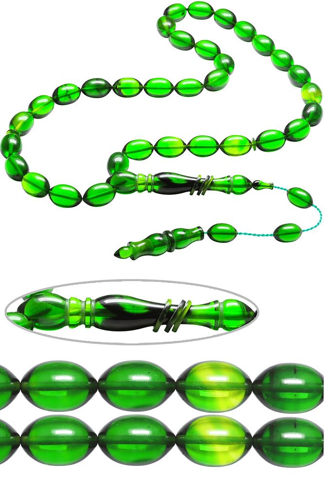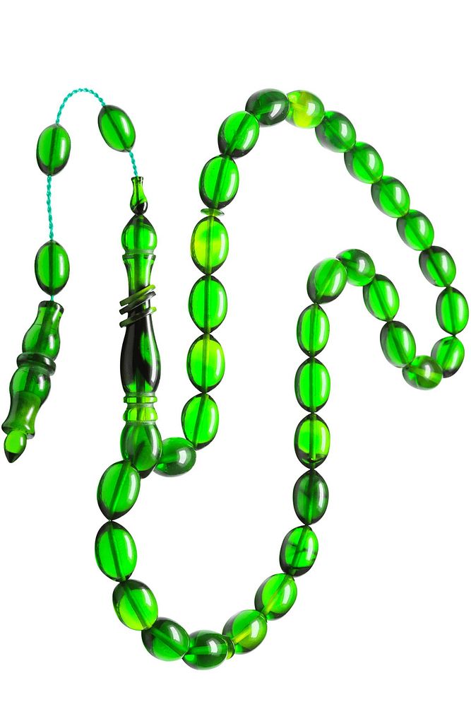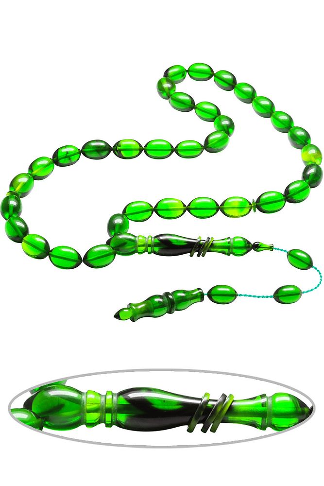 Sistemli Beyzi Kesim Yeşil Renkli Halkalı Ateş Kehribar Tesbih