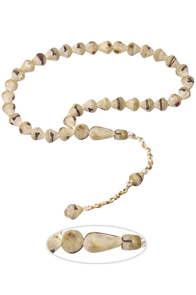 Bu tasarımda; Peygamber efendimizin dikmiş olduğu acve türü hurma çekirdeği kullanılmıştır. Zaman içerisinde kullanımda renk alır ve çektikçe kararır. Bakımını badem yağı ve ceviz yağı ile yapabilirsiniz.