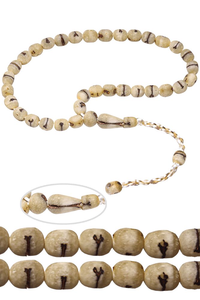 Bu tasarımda; Peygamber efendimizin dikmiş olduğu acve türü hurma çekirdeği kullanılmıştır. Zaman içerisinde kullanımda renk alır ve çektikçe kararır. Bakımını badem yağı ve ceviz yağı ile yapabilirsiniz.