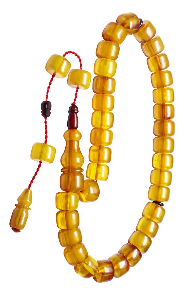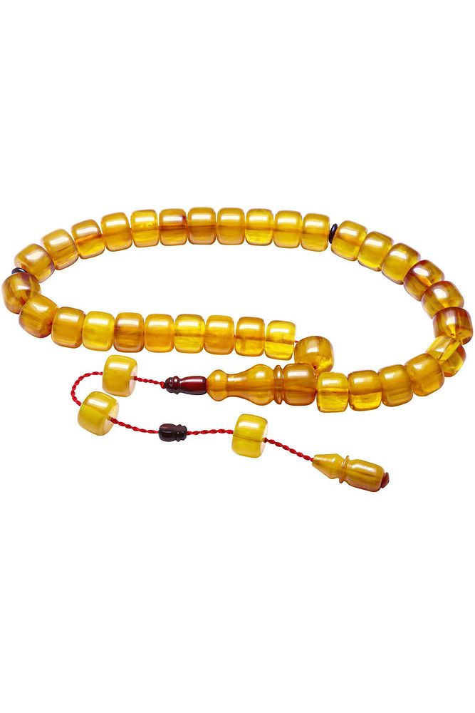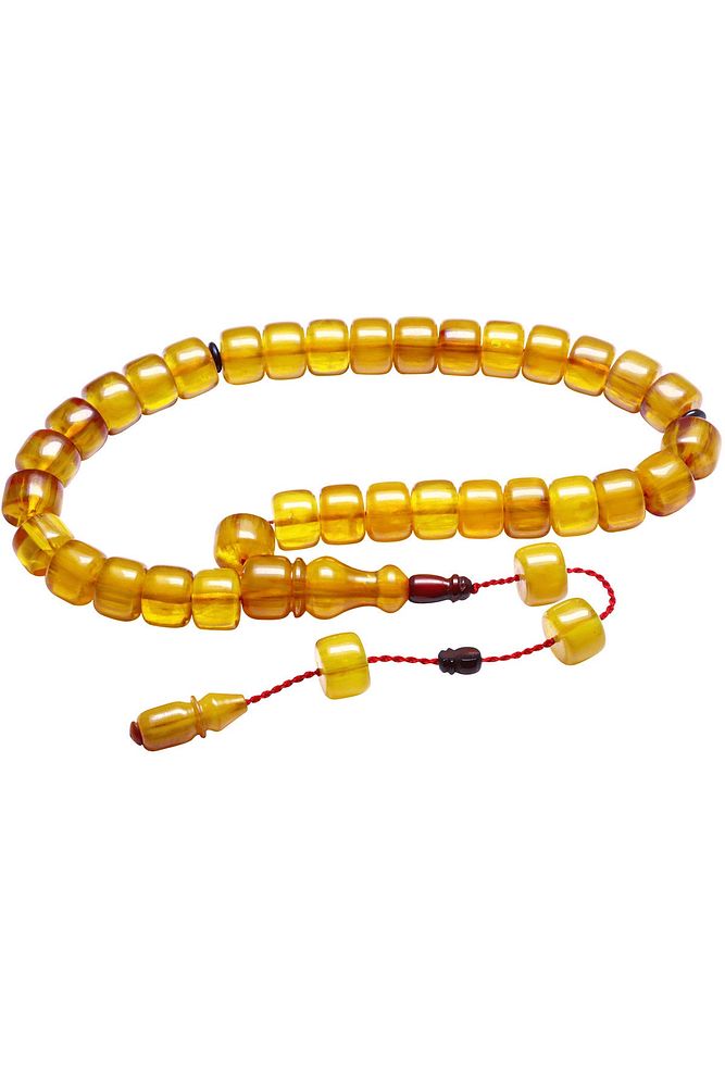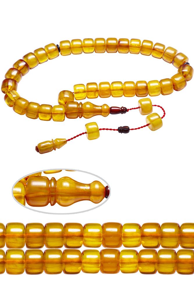 Sistemli Fıçı Kesim Sarı Renkli Çubuk Sıkma Kehribar Tesbih