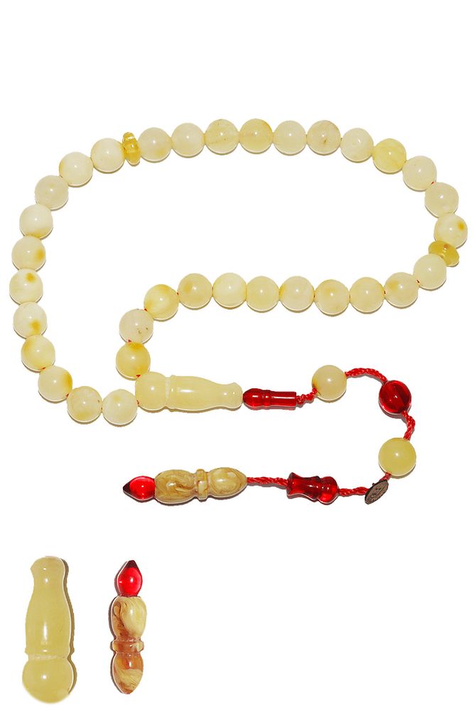 Sistemli Her Tanesi Kumpas Işcilikli Kızarmış Seccar Damla Kehribar Tesbih