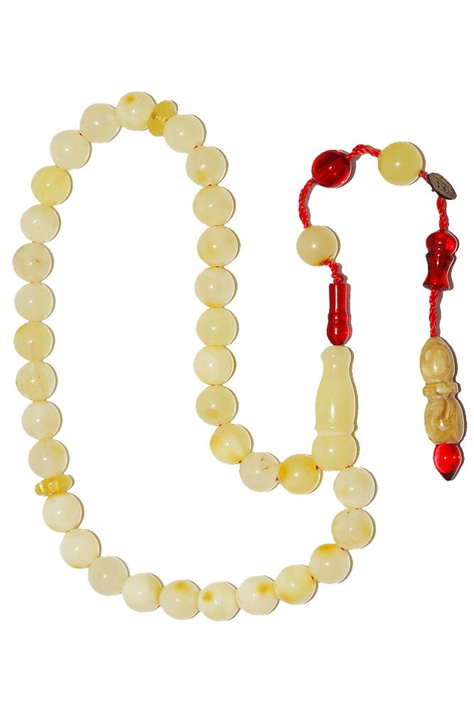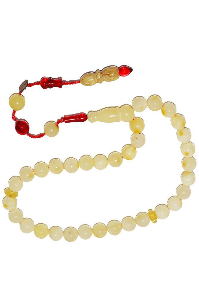 Üretildiği Taş : Kehribar Taşı Renk : Doğal Renk Ağırlık : 7.2 gr Tane Şekli : 6.3x6.3 mm Tane Ölçüsü : Küre Kesim Toplam Uzunluk : 20-30 cm Püskül Maddesi : Sistemli