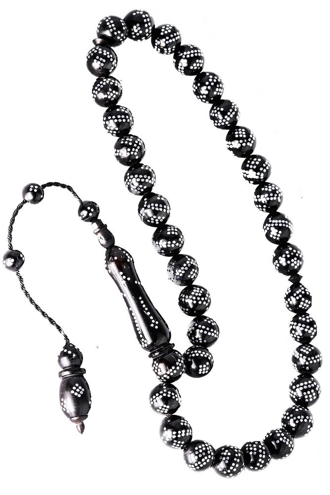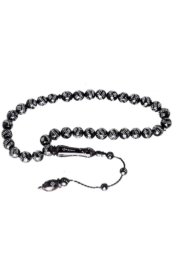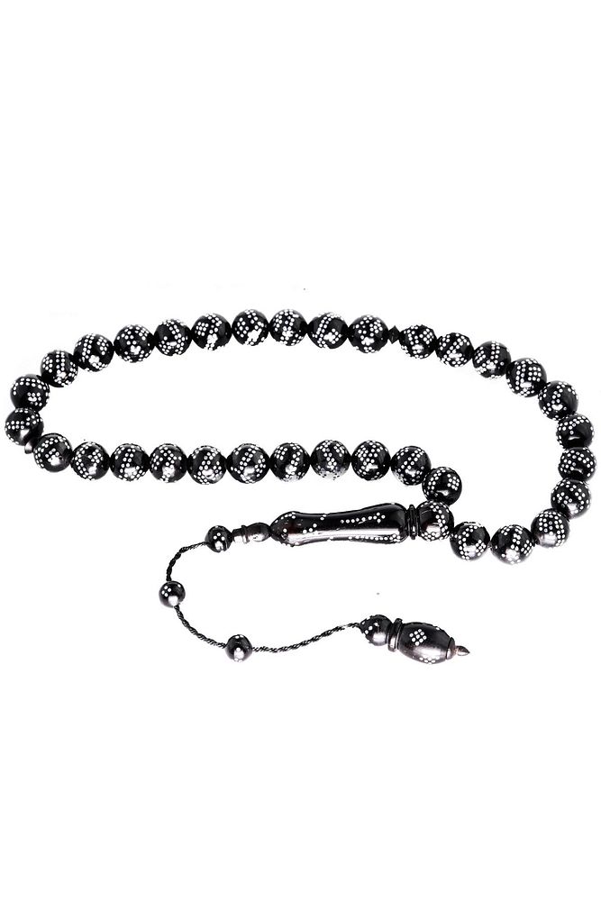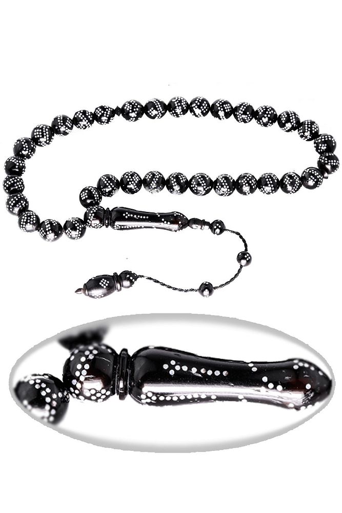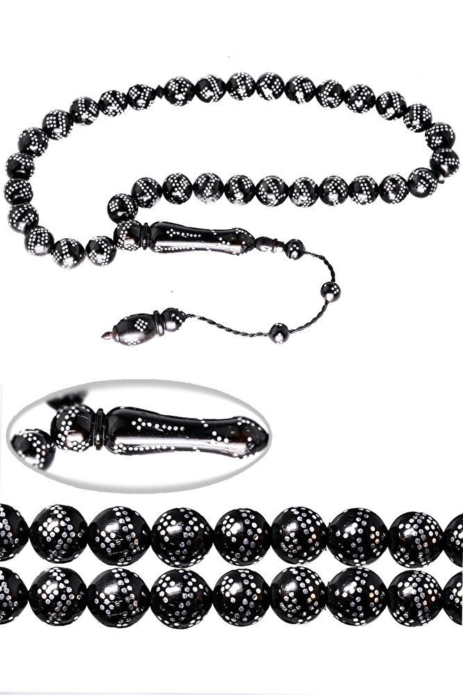 Sistemli Küre Kesim Çift Sıra Gümüş Işlemeli Kuka Tesbih