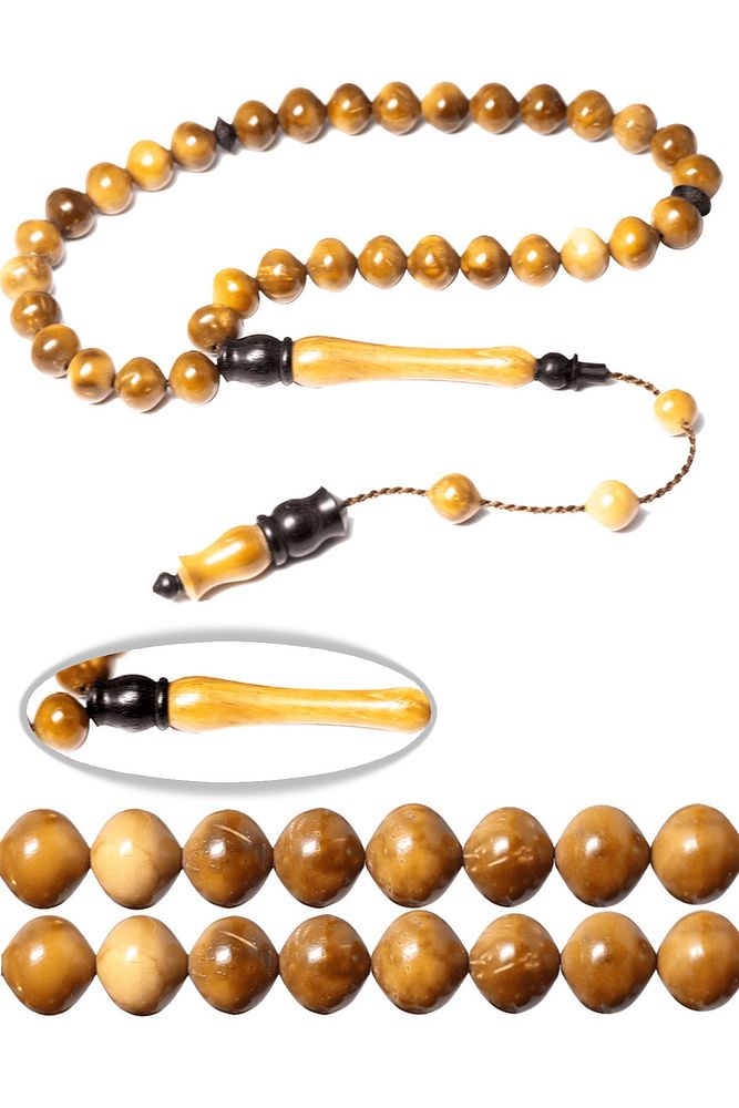 Ürün ya da Doğal Taş Açıklaması (Doğal Antibakteriyel Temizleyici - Çektikçe Parlayan ve Kararır) Kuka tesbih modelleri, ''Tesbih Atölyesi'' Atölyelerinde ustalarımız tarafından kuru torna işciliği ile elde özen ile tane tane işlenmektedir. Ürünlerimiz el işciliği olduğu için sınırlı sayıda üretilmektedir. Tasarımlarımızda kullandığımız Kuka meyvesidir. Üzerine üç kat el cilası atılmıştır. Üzerindeki yoğun gümüş işlemesi büyüteç yardımı ile mikron mikron tane tane özel olarak işlenmiştir. Osmanlıda hekimler tarafından kullanılır eldeki bakterileri temizler. ''Bu tasarımda; Fiberglass geçişli sade küre kesim Kuka Meyvesi kullanılmıştır.'' Zaman içerisinde kullanımda renk alır ve çektikçe kararır. Bakımını badem yağı ve ceviz yağı ile yapabilirsiniz. Üretildiği Ağaç; Kuka Ağacı; İşlemesi; Fiberglass İşlemeli; Ağırlık; 30-35gr; Tane Şekli; 8x9 mm; Tane Ölçüsü; Sığırcık Kesim; Toplam Uzunluk; 20 cm; İmame ve Püskül Maddesi; Sistemli;