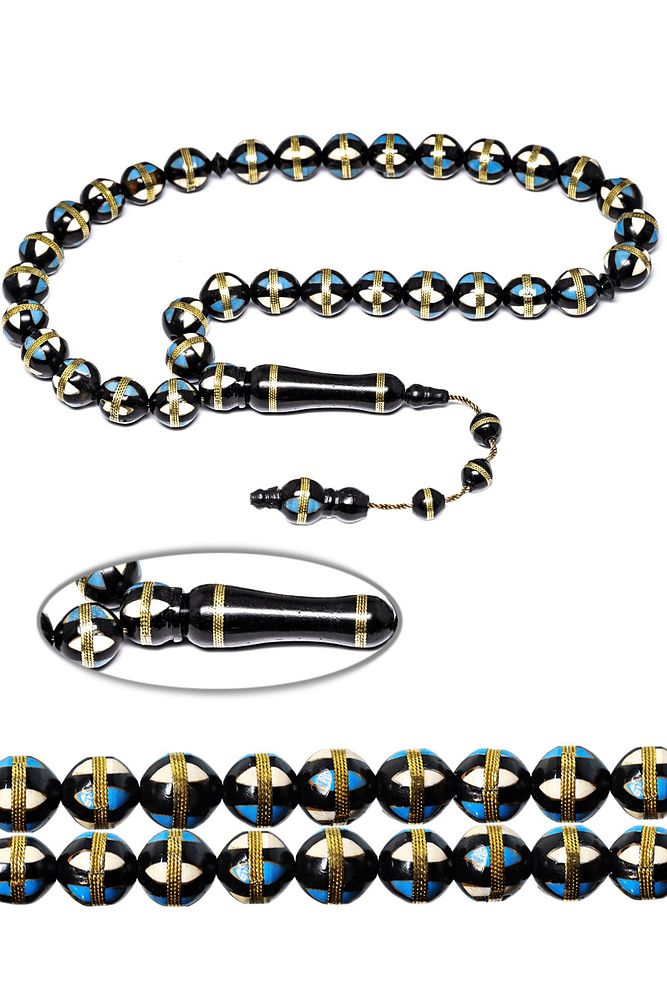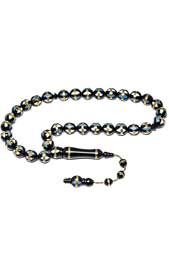 Sistemli Küre Kesim Firuze Işlemeli Pirinç Sarmal Kuka Tesbih