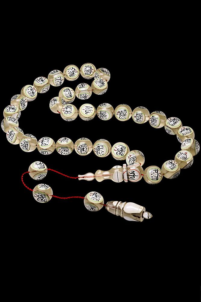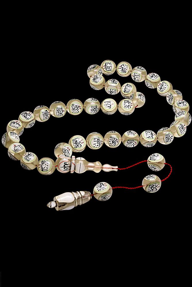 Sistemli Küre Kesim Iri Boy Koleksiyonluk Esmaül Hüsna Uçak Camı Resimli Tesbih