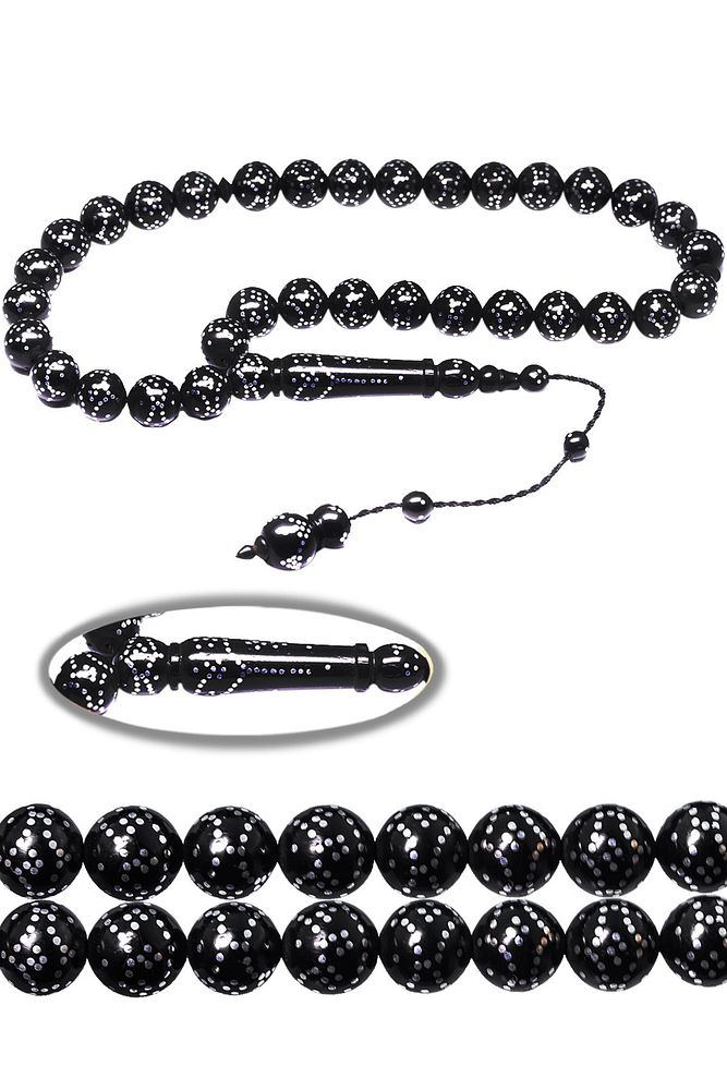 Sistemli Küre Kesim Yoğun Gümüş Işlemeli Kuka Tesbih