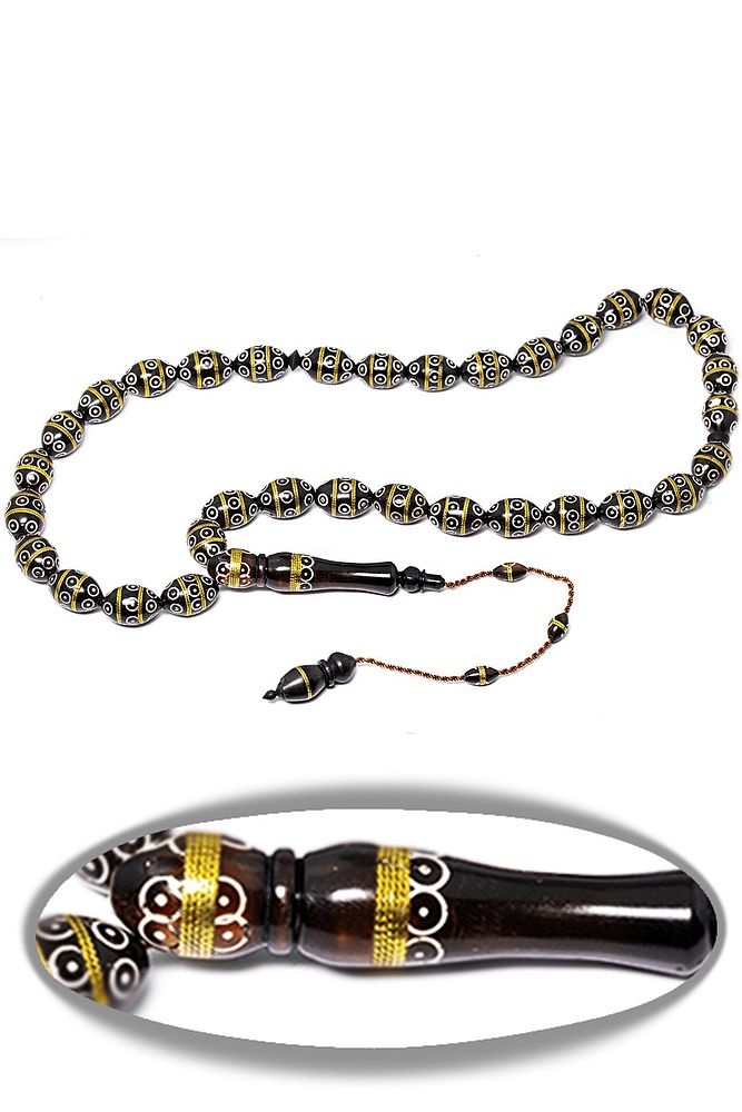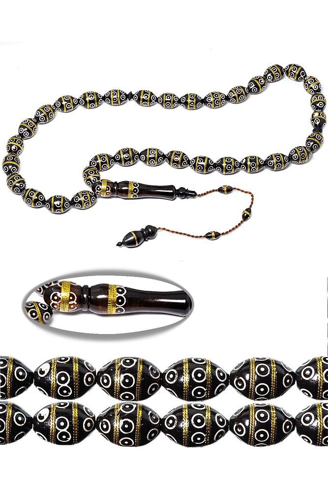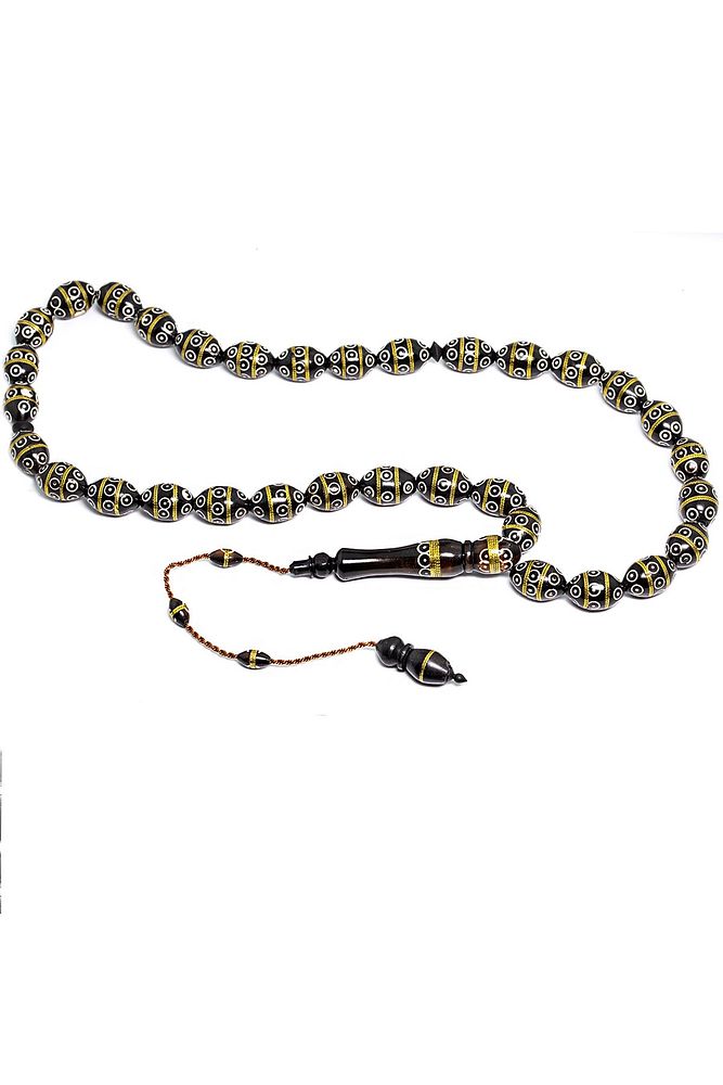 Sistemli Tombul Beyzi Kesim Iri Boy Sedef Pirinç Işlemeli Kuka Tesbih