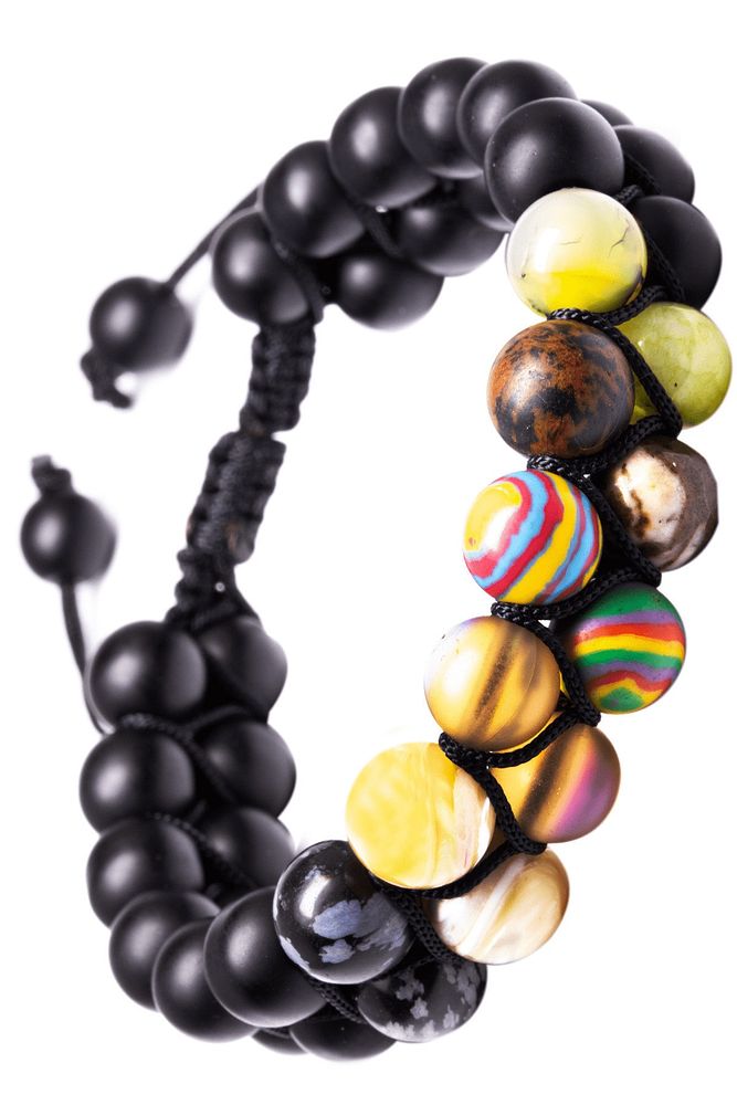Siyah Küre Çift Sıra Makrome 7 Çakra Bileklik
