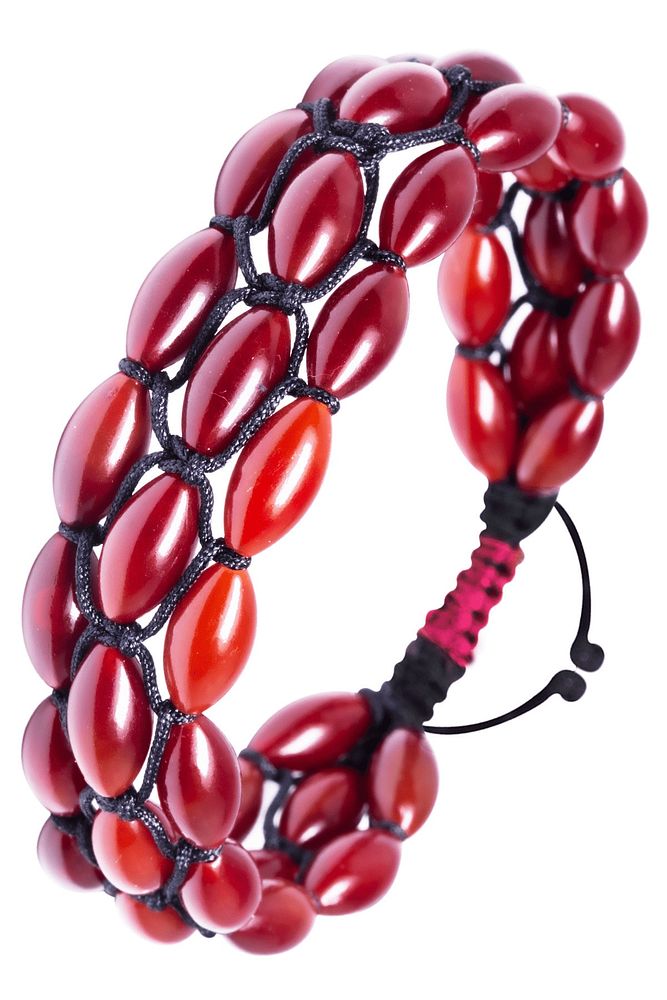 Siyah Makrome Kırmızı Sıkma Kehribar Bileklik