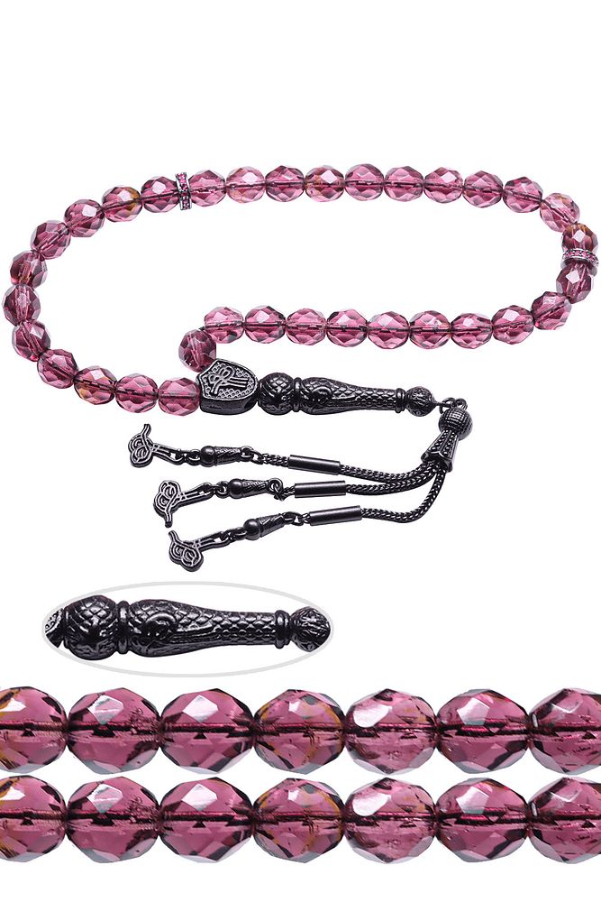 Siyah Nikel Püsküllü Fasetli Ametist Tesbih