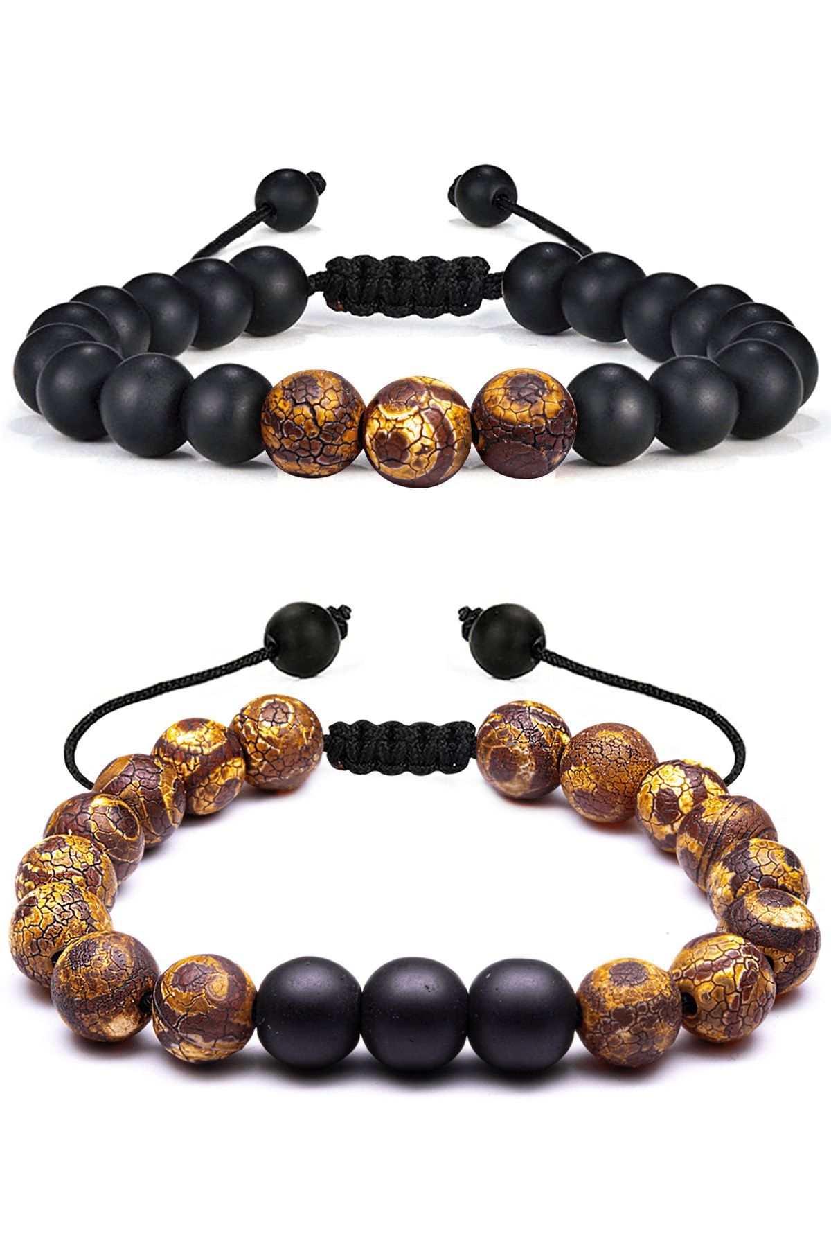 Tibet Akik Kahverengi Renk Doğal Taş Bileklik Seti