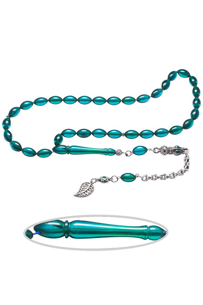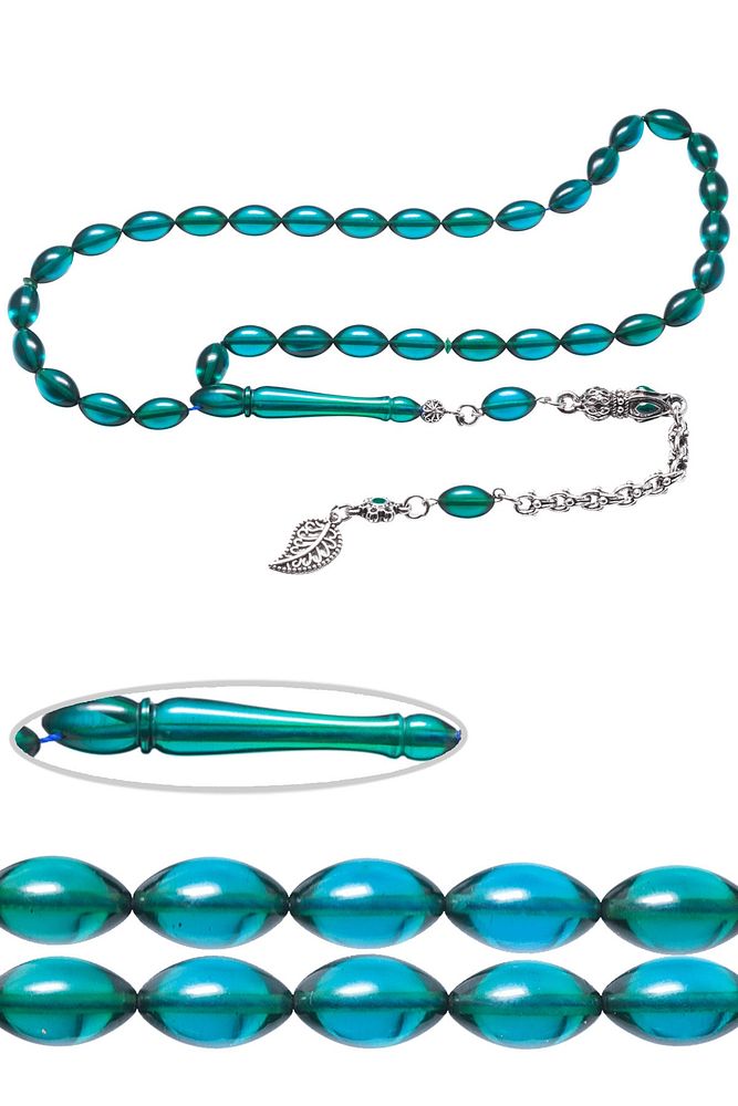Ürün ya da Doğal Taş Açıklaması (Ağrı Kesici, Sinir Stres ve Bereket Taşı) Ateş kehribar tesbih modelleri, ''Tesbih Atölyesi'' Atölyelerinde ustalarımız tarafından kuru torna işciliği ile elde özen ile tane tane işlenmektedir. Ürünlerimiz el işciliği olduğu için sınırlı sayıda üretilmektedir. Tasarımlarımızda kullandığımız reçineler Dünya'nın en kaliteli reçineleridir. Kısa bir süre içerisinde renk alır ve koku verir. Ürünleriniz orijinallik ve garanti belgesi ile gönderilir. Tasarımlarımıza üç kat cila atılmıştır. Muhteşem bir çekime sahip koleksiyonluk ve günlük çekim için ideal ürünlerdir. Bu tasarımda; Turkuaz ve ultra şeffaf renkli şeffaf delim 1.sınıf renk alan ve koku veren kaliteli ateş kehribar reçine kullanılmıştır. Her kehribar tanesi birbirinin aynısı olmadığı için küçükte olsa farklılıklar gösterebilir. Üretildiği Malzeme; Ateş Kehribar; Ana Renk; Turkuaz ve Şeffaf Renk; Ağırlık; 20-30 gr; Tane Şekli; 7x12 mm; Tane Ölçüsü; Beyzi Kesim; Toplam Uzunluk; 20-30 cm; İmame ve Püskül Maddesi; Düşük Ayar Gümüş;