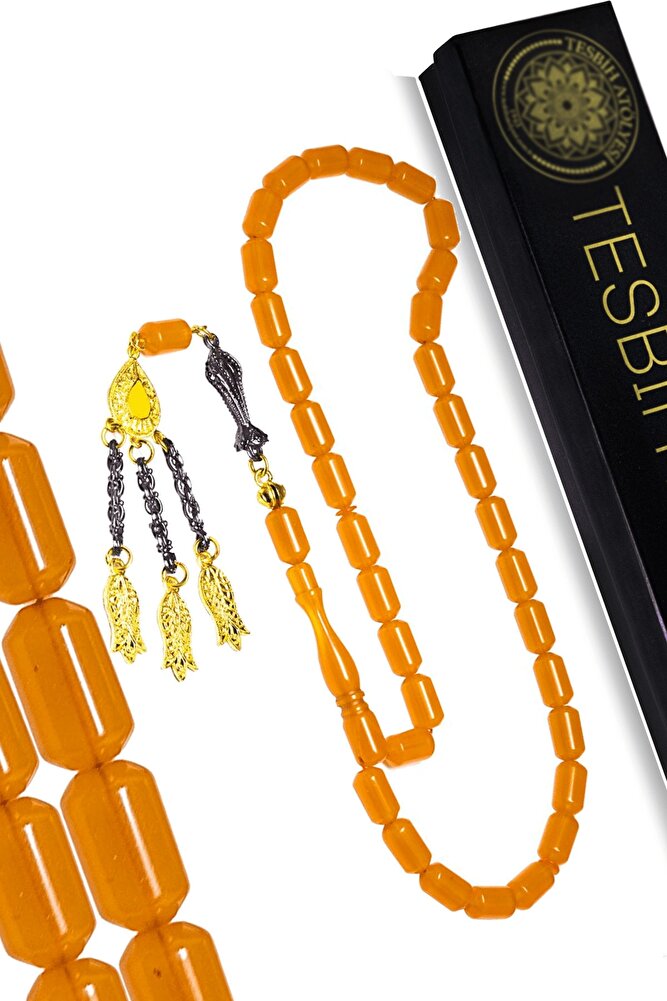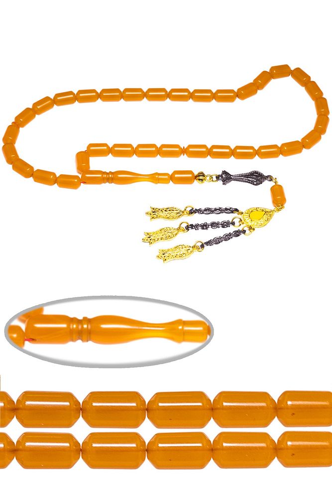 Turuncu Renkli Kapsül Kesim Zar Kehribar Tesbih