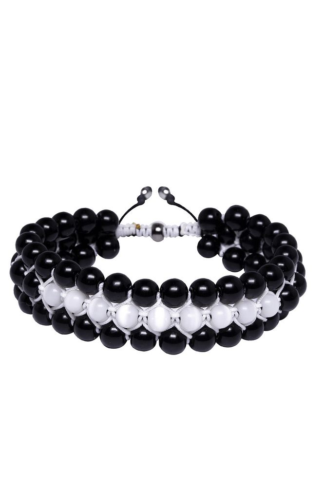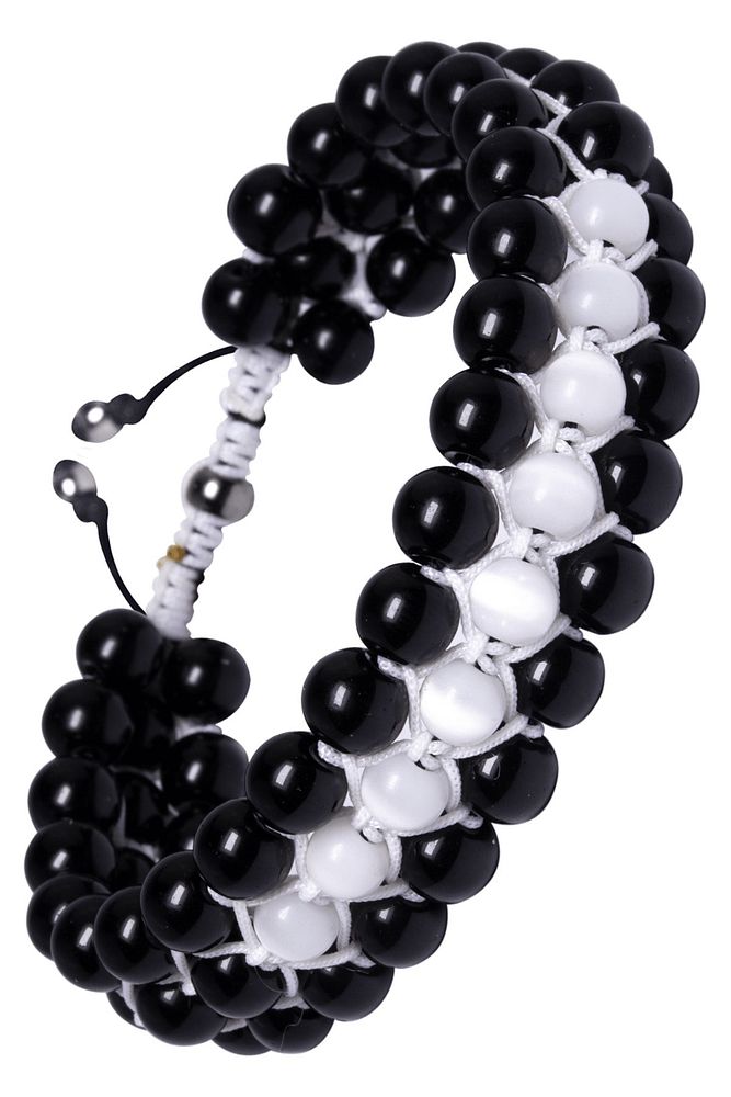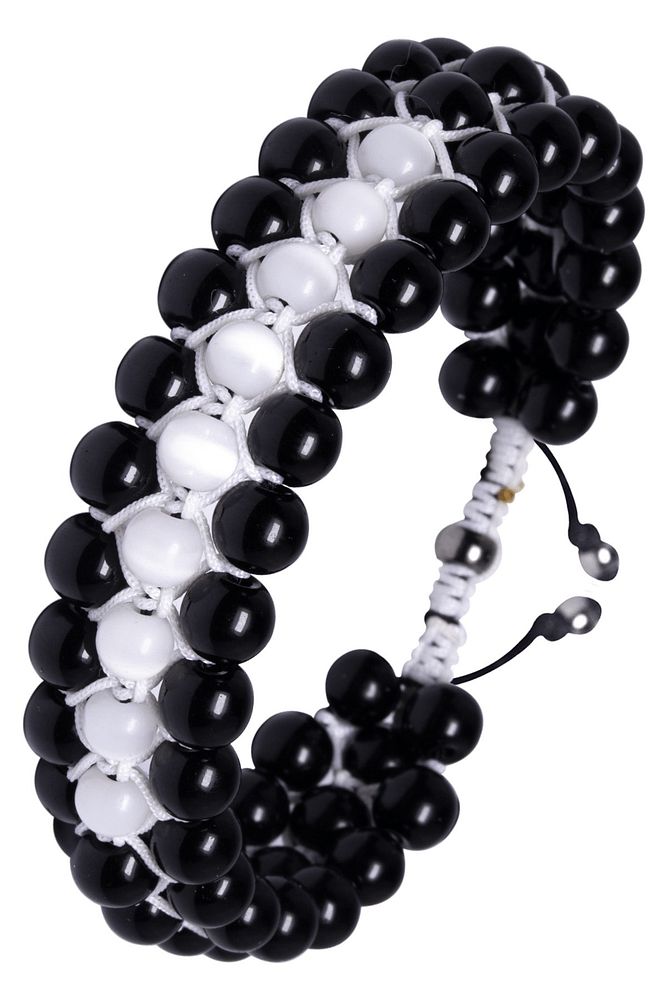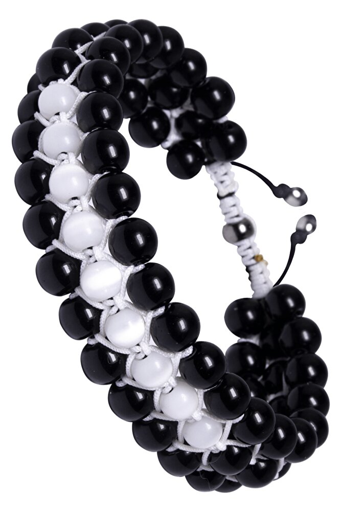 Üçlü Beyaz Makrome Parlak Oniks Ve Sedef Bileklik