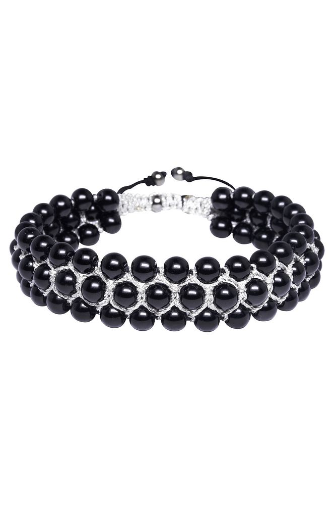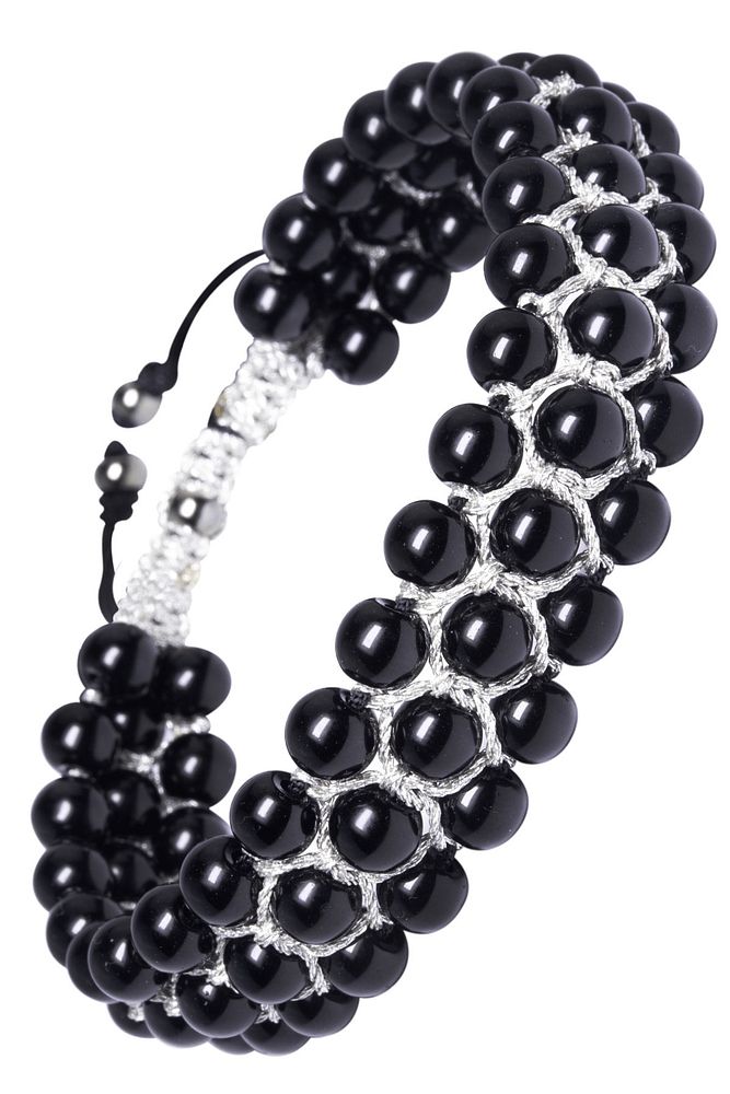Üçlü Gümüş Makrome Parlak Oniks Bileklik