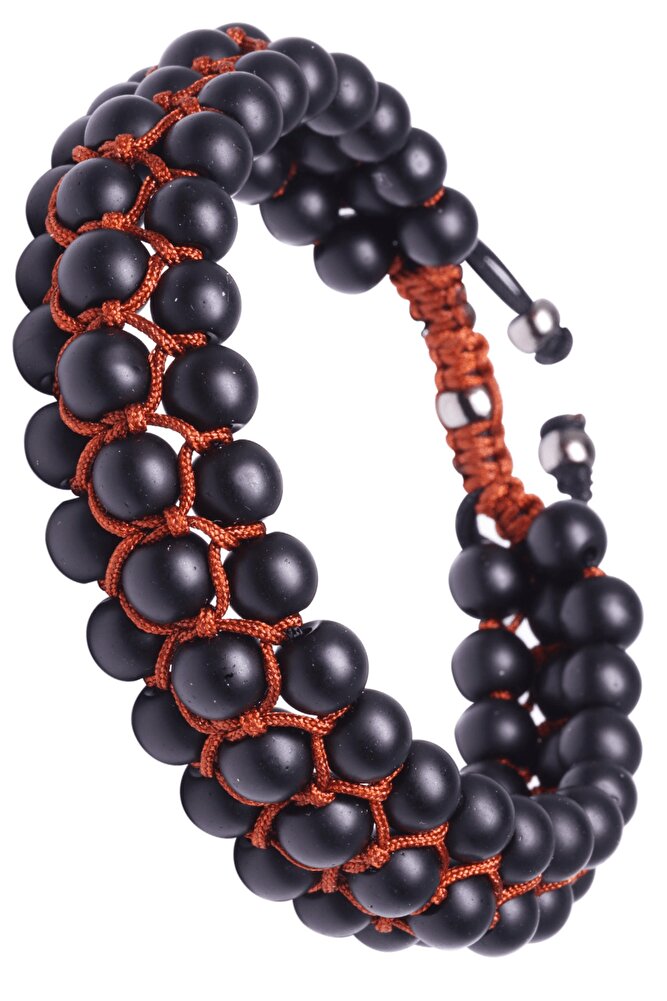 Üçlü Kahve Makrome Mat Oniks Bileklik