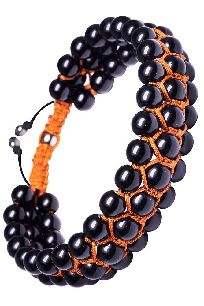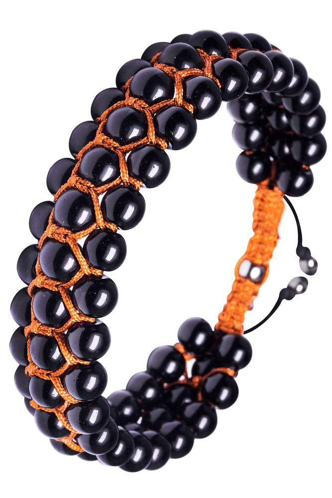 Üçlü Turuncu Makrome Parlak Oniks Bileklik