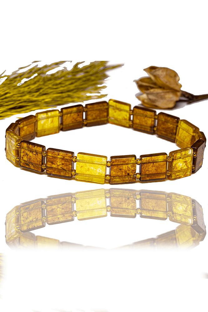 Bu tasarımda; Doğal Sarı - Şeffaf Damla Kehribar Bileklik kullanılmıştır. Esnek misinalı ipi sağlam örülerek yapıldığı için asla kopmaz ve aşınmayacak her bileğe göre ayarlanabilir boyuttadır.