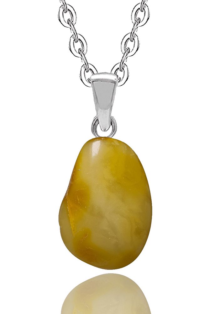 Üretici Sertifikalı Şekilsiz Kesim Damla Kehribar Kolye